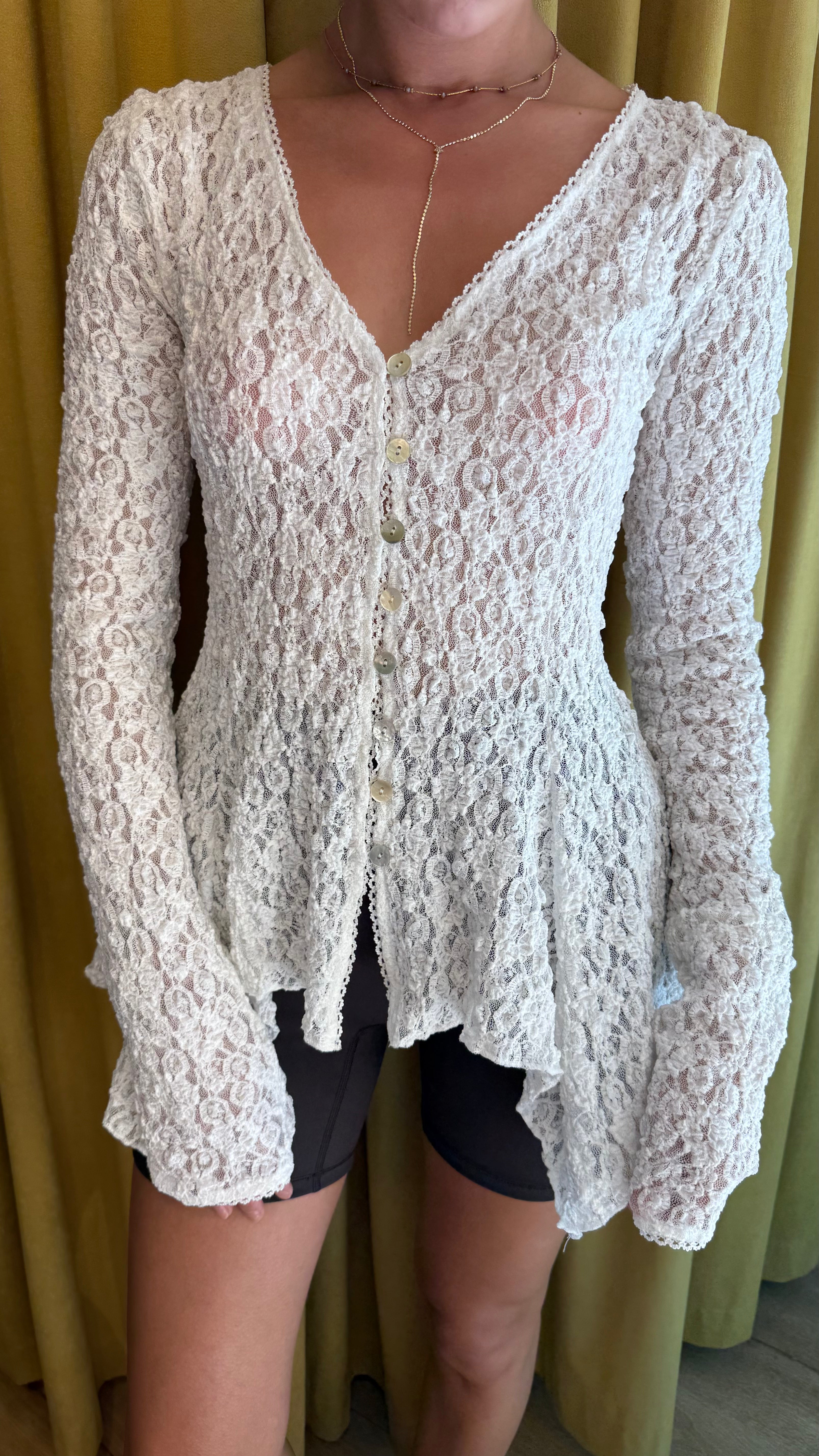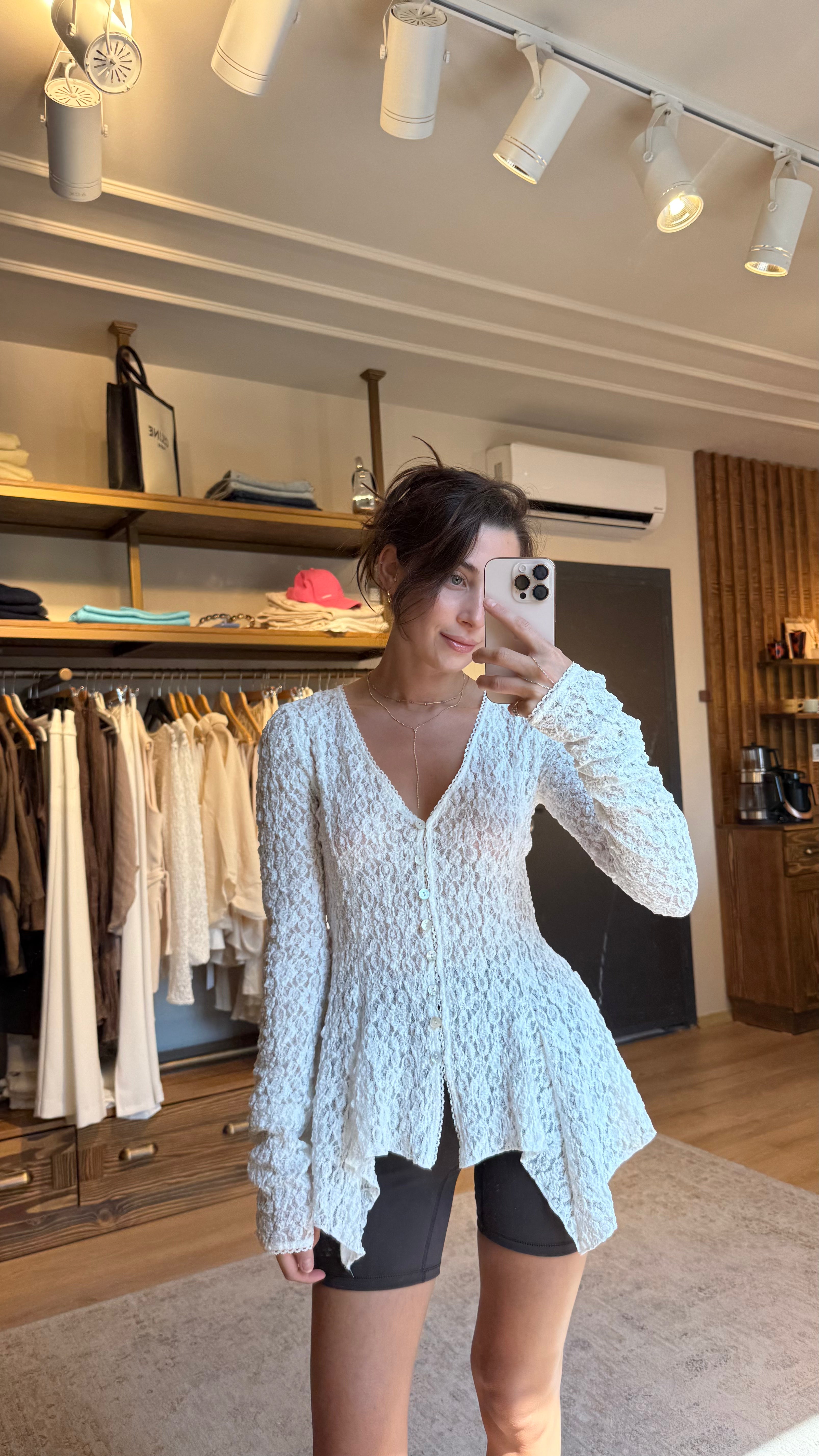 BEYAZ DANTEL KUMAŞ DÜĞME DETAYLI BLUZ