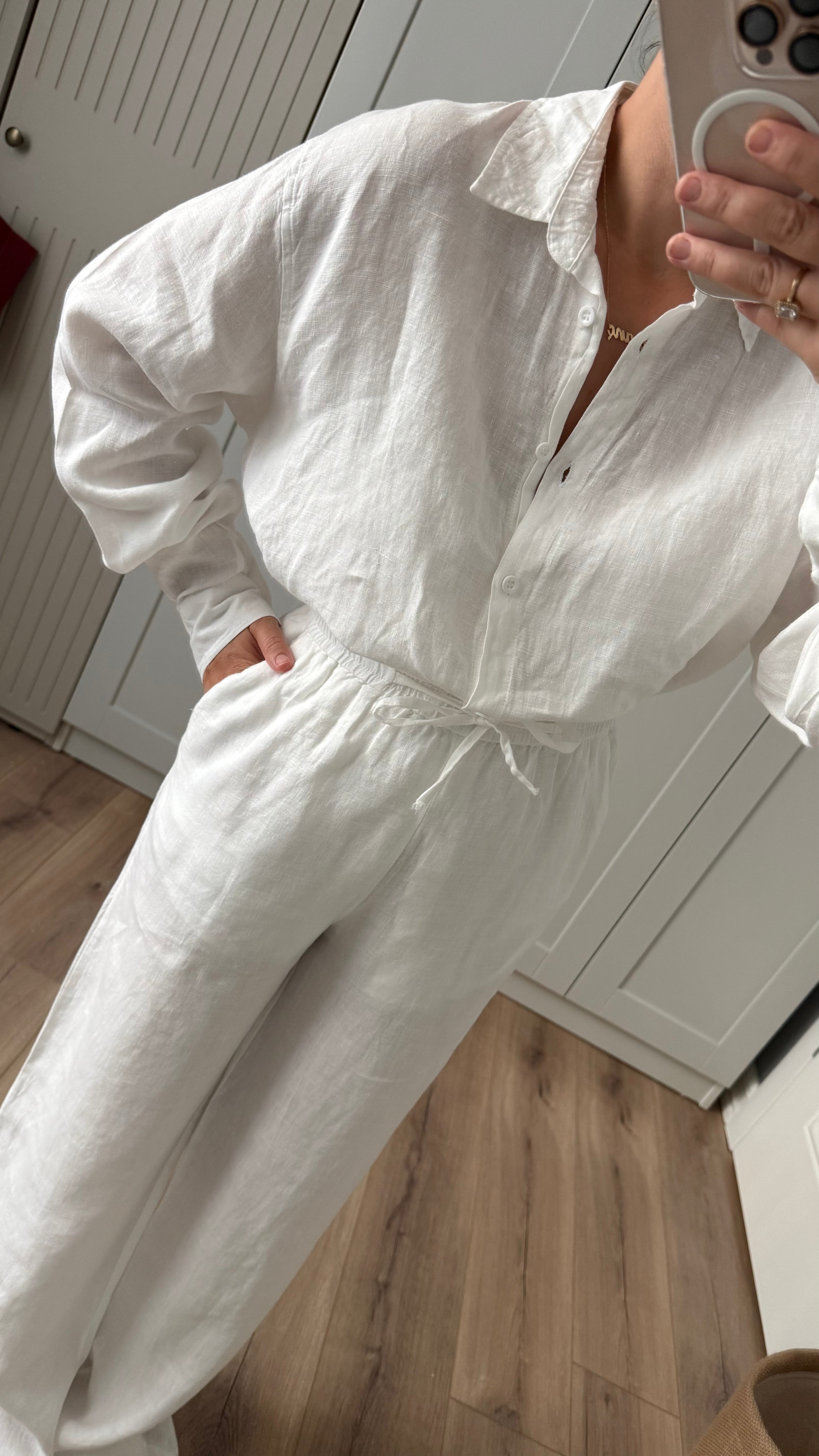 BEYAZ KETEN GÖMLEK PANTOLON TAKIM