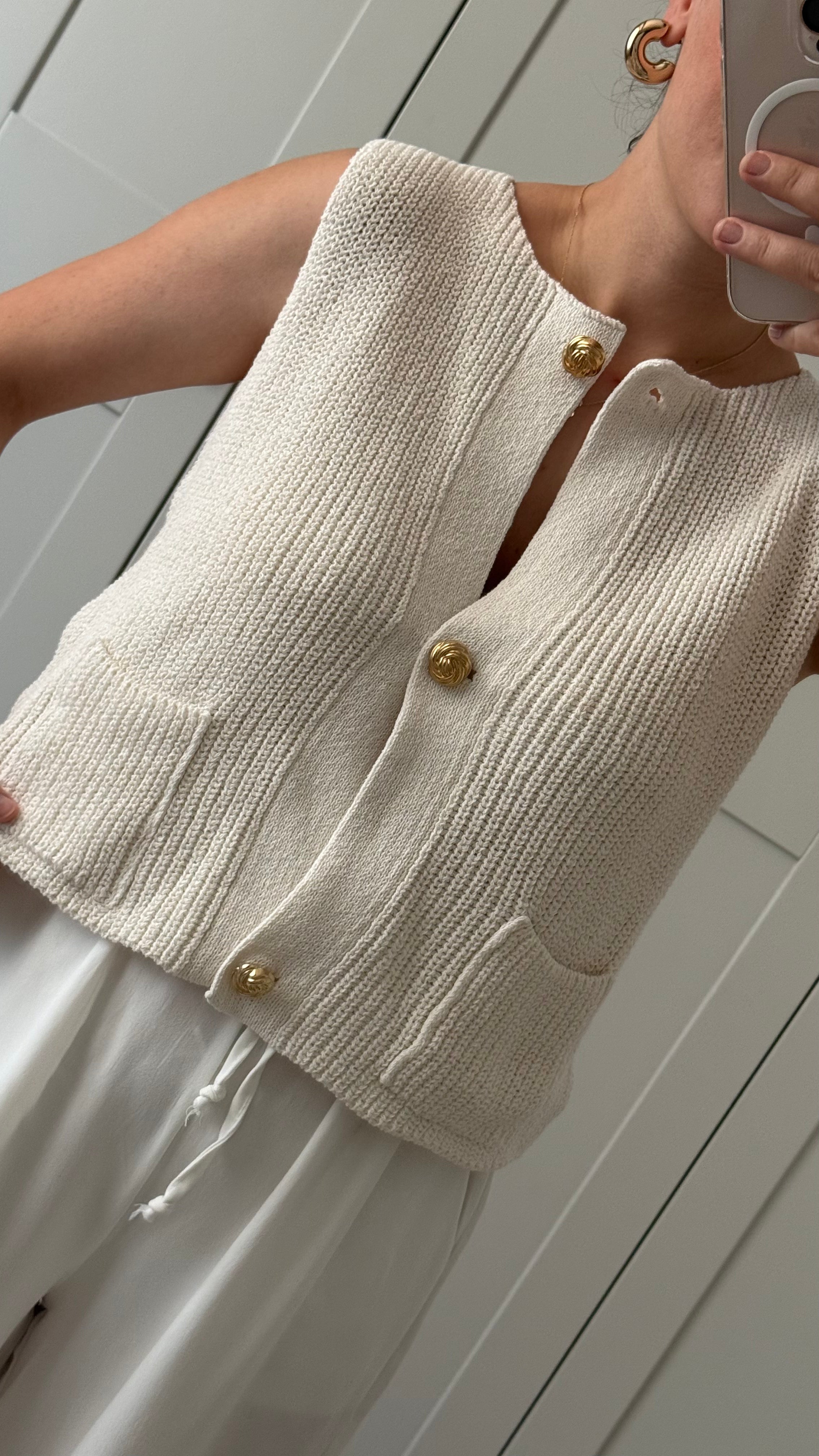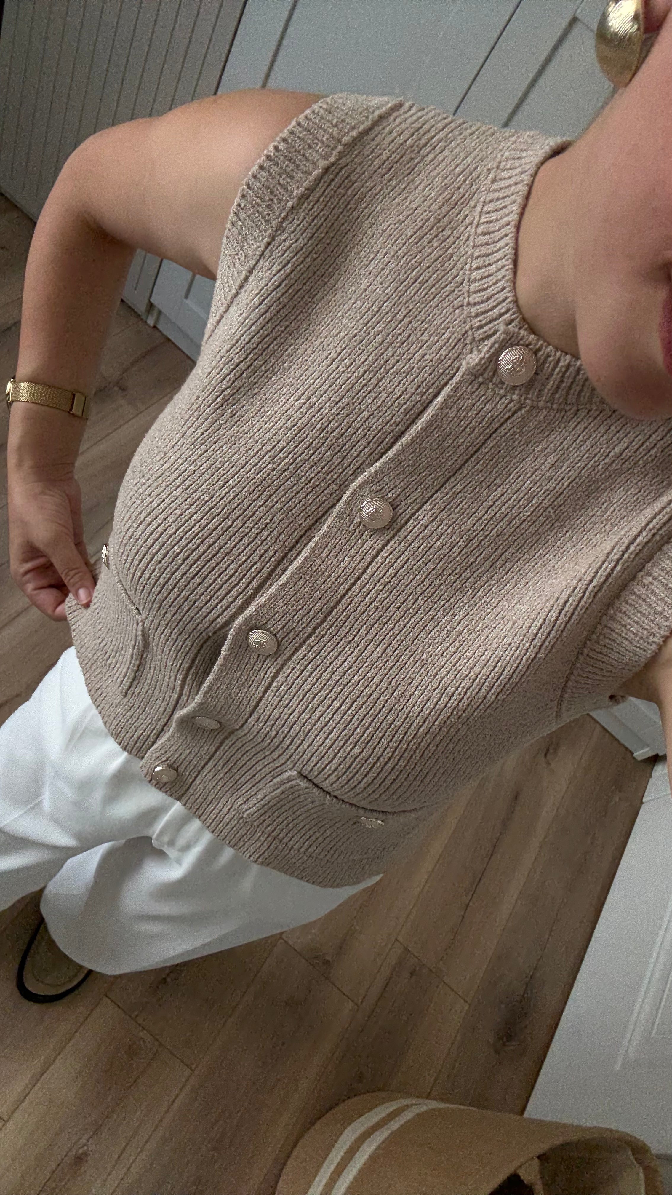 EKRU GOLD DÜĞMELİ ÖRME YELEK