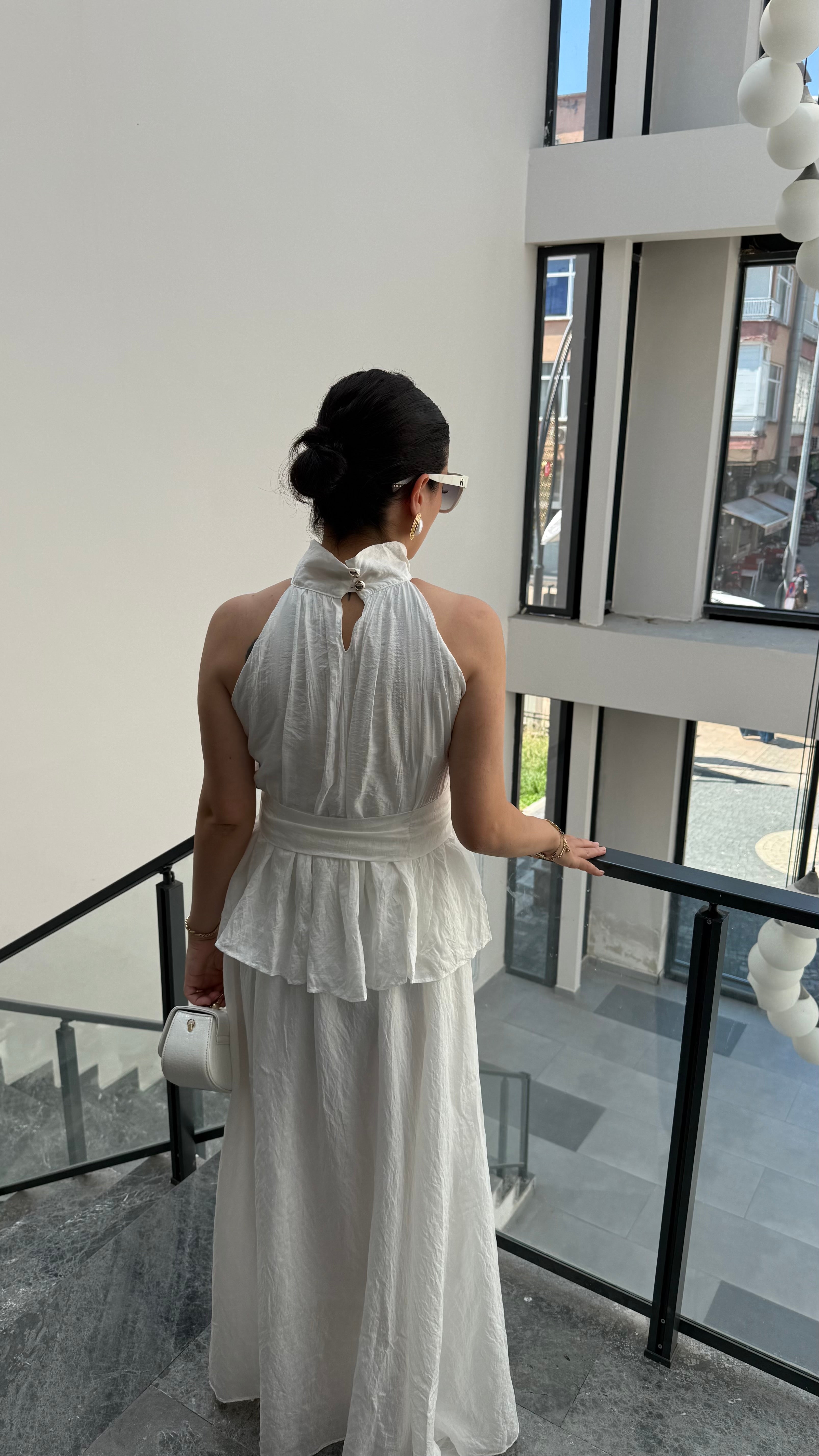BEYAZ PİLİSELİ BLUZ ETEK TAKIM