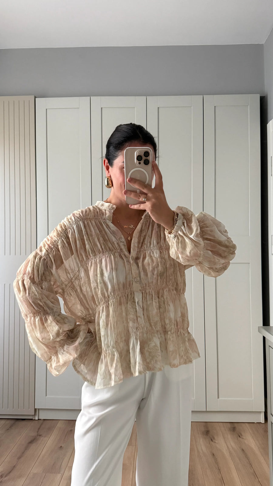 FIRFIR DETAYLI PİLİSELİ GÖMLEK - BEYAZ