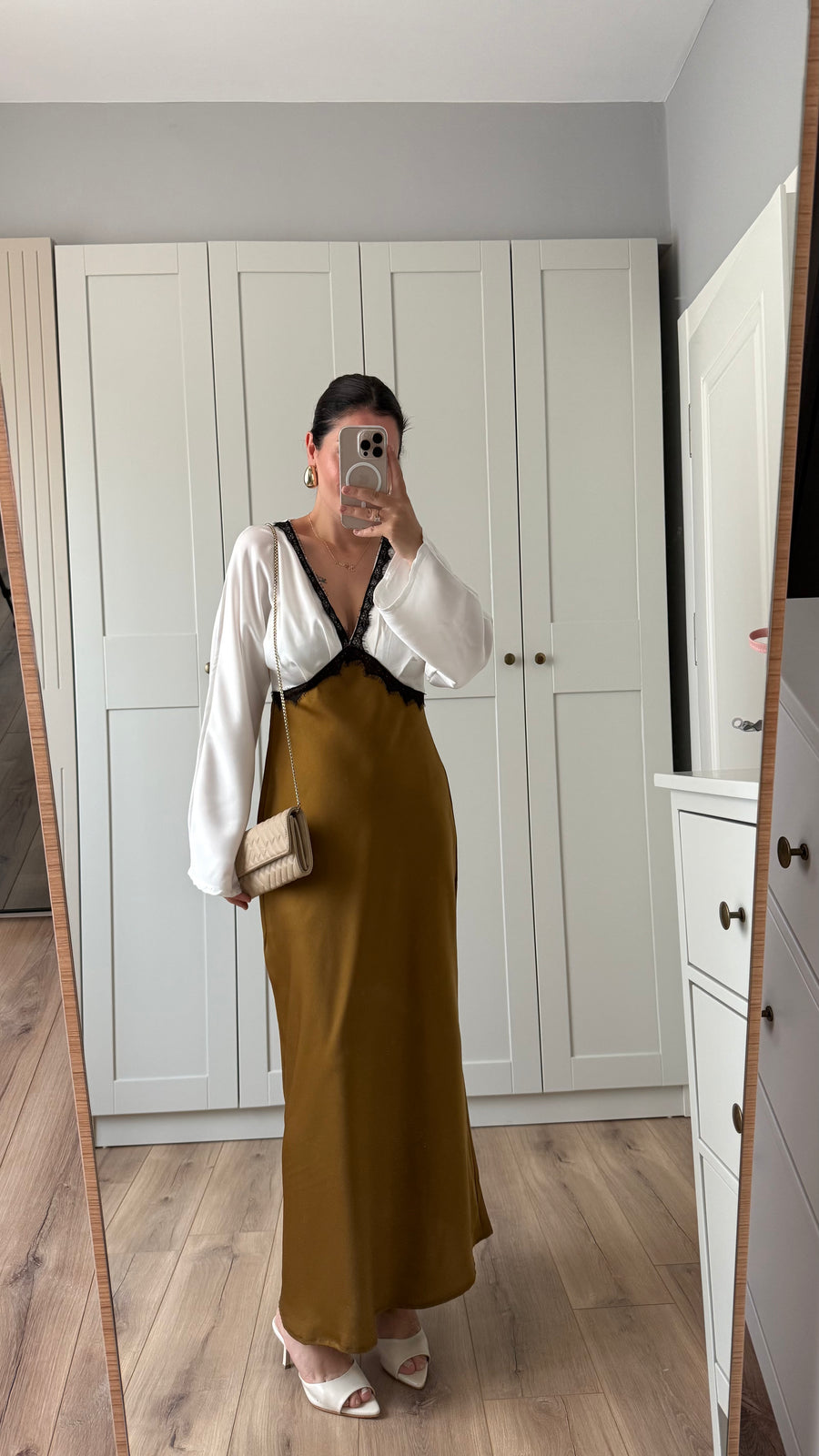 DANTEL DETAYLI SATEN SLİP ELBİSE