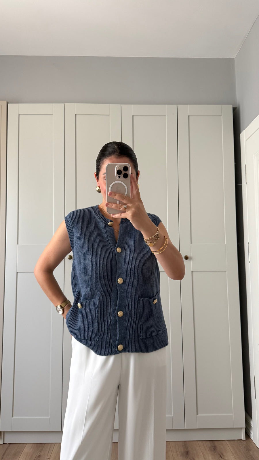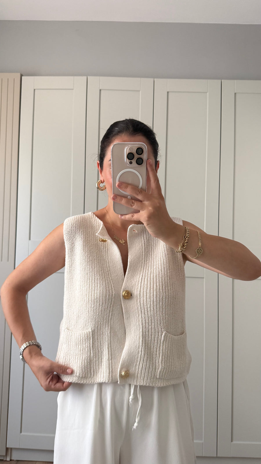 EKRU GOLD DÜĞMELİ ÖRME YELEK