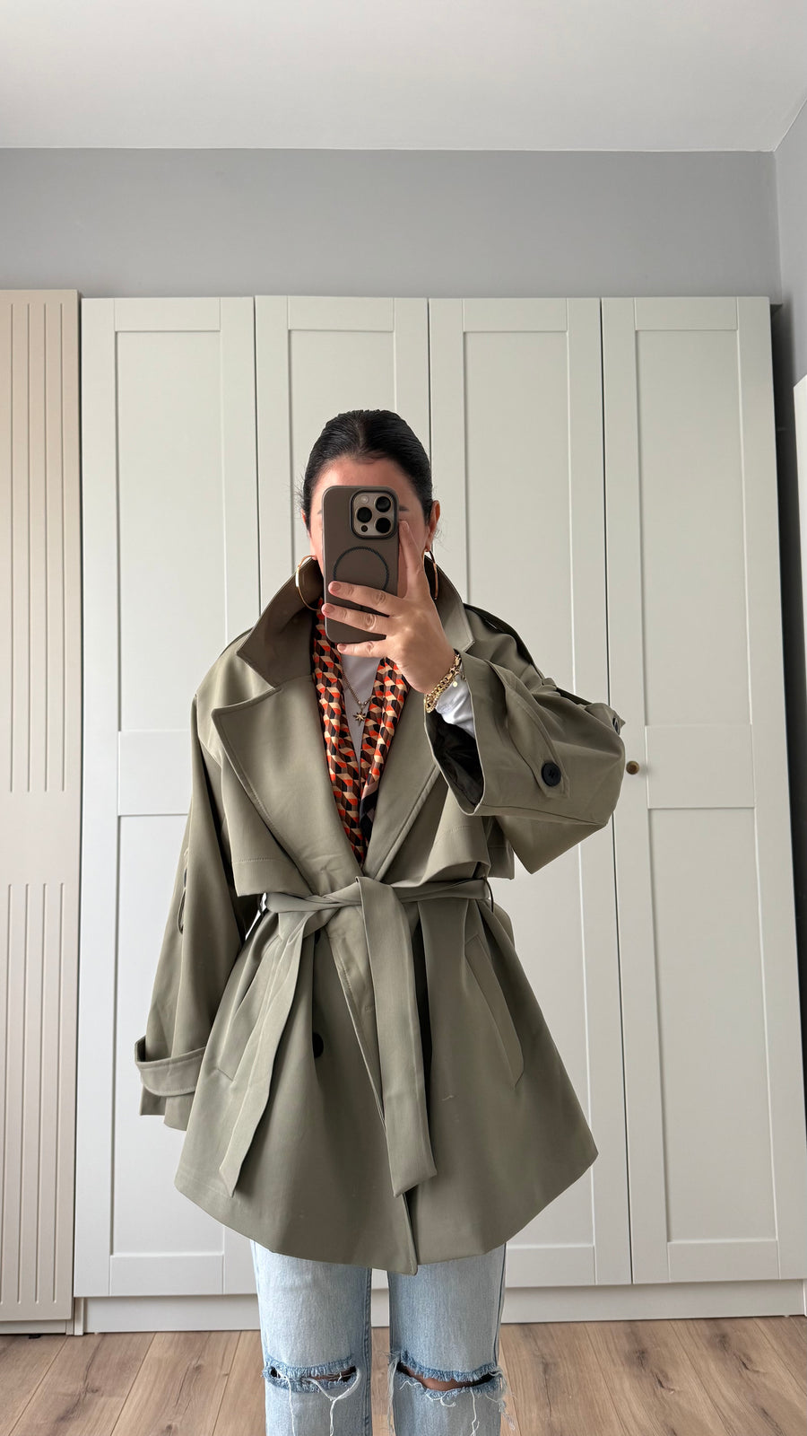 HAKİ BEL KUŞAKLI TRENÇKOT
