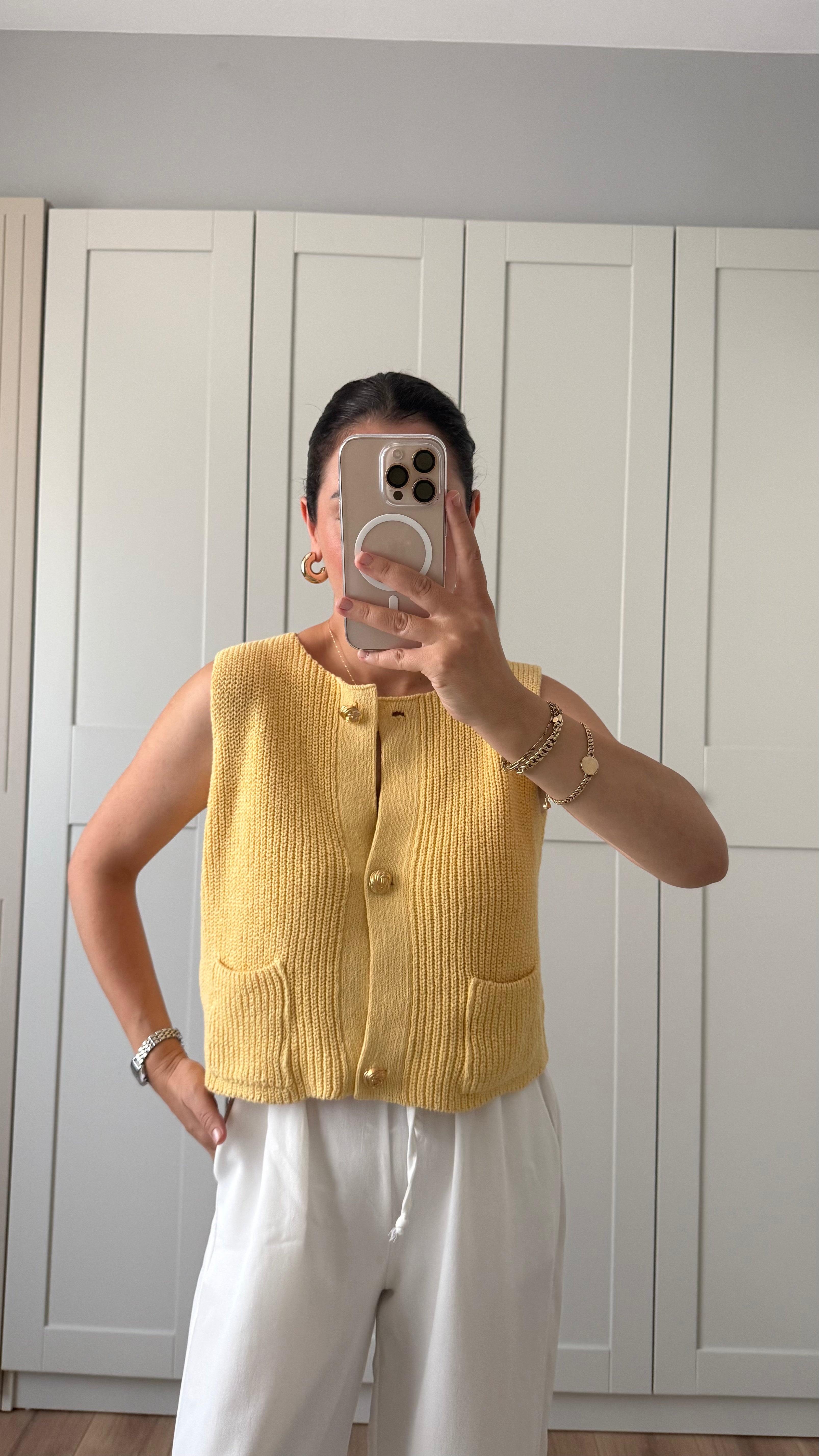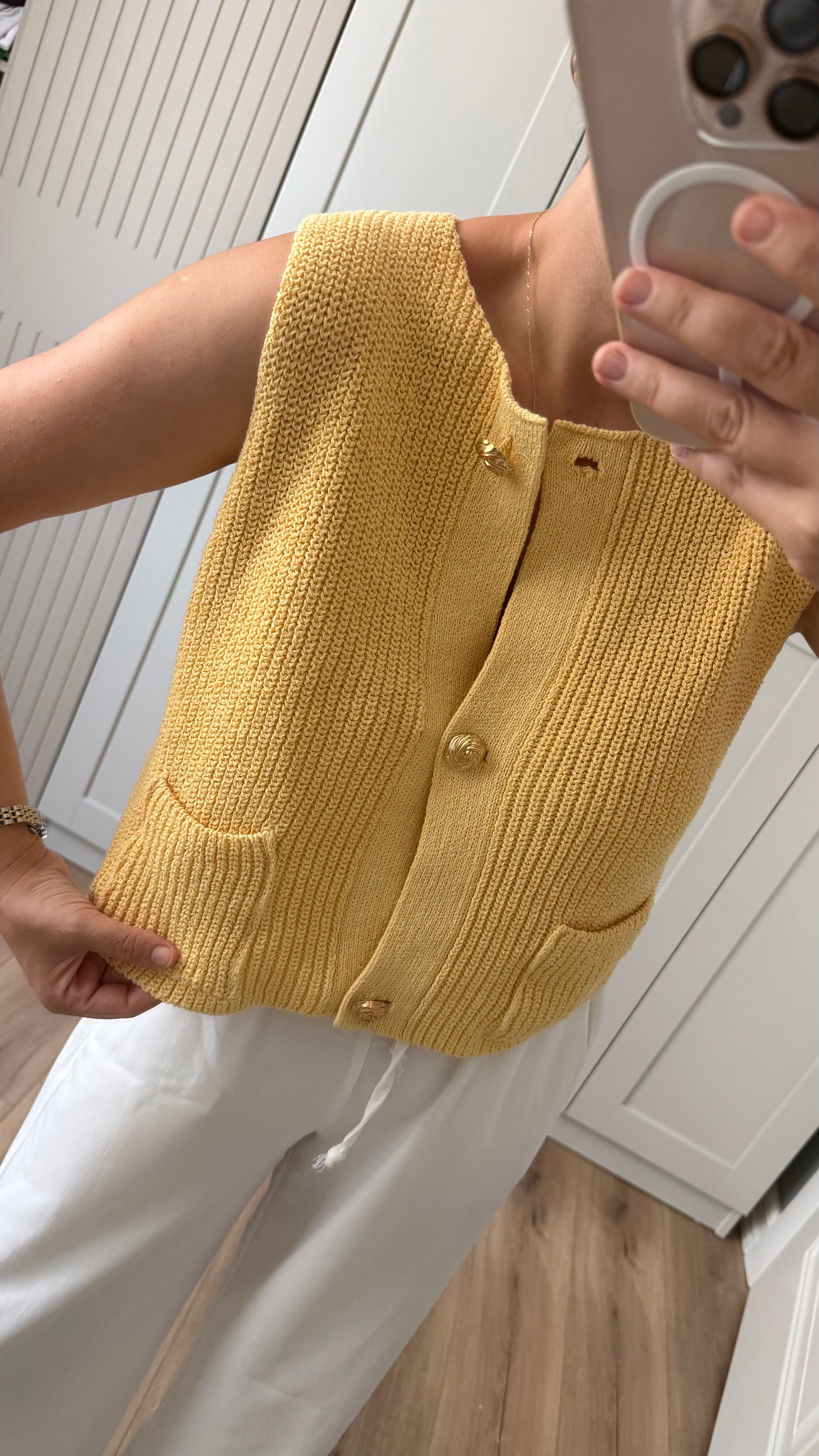SARI GOLD DÜĞMELİ ÖRME YELEK