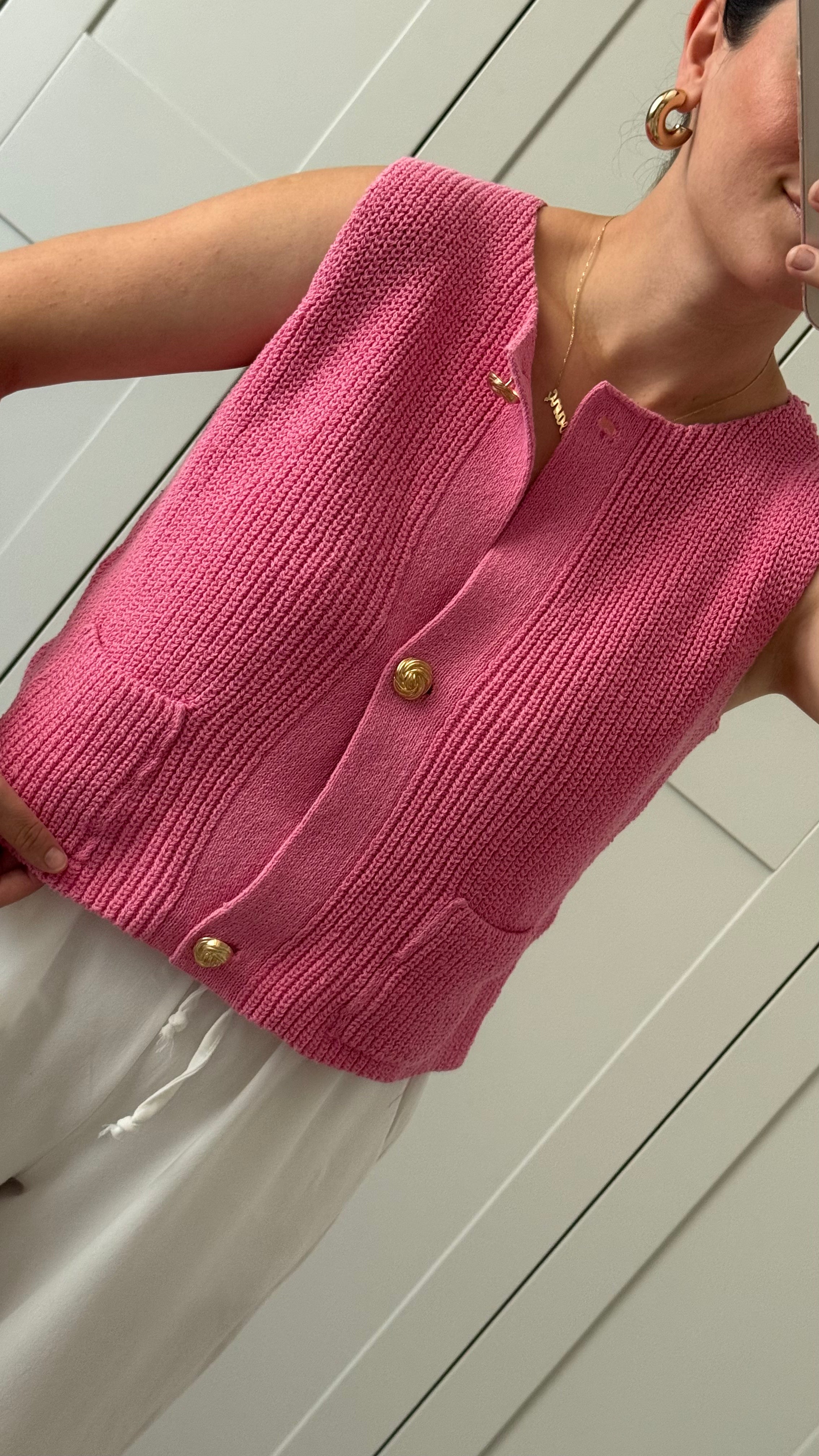 PEMBE GOLD DÜĞMELİ ÖRME YELEK