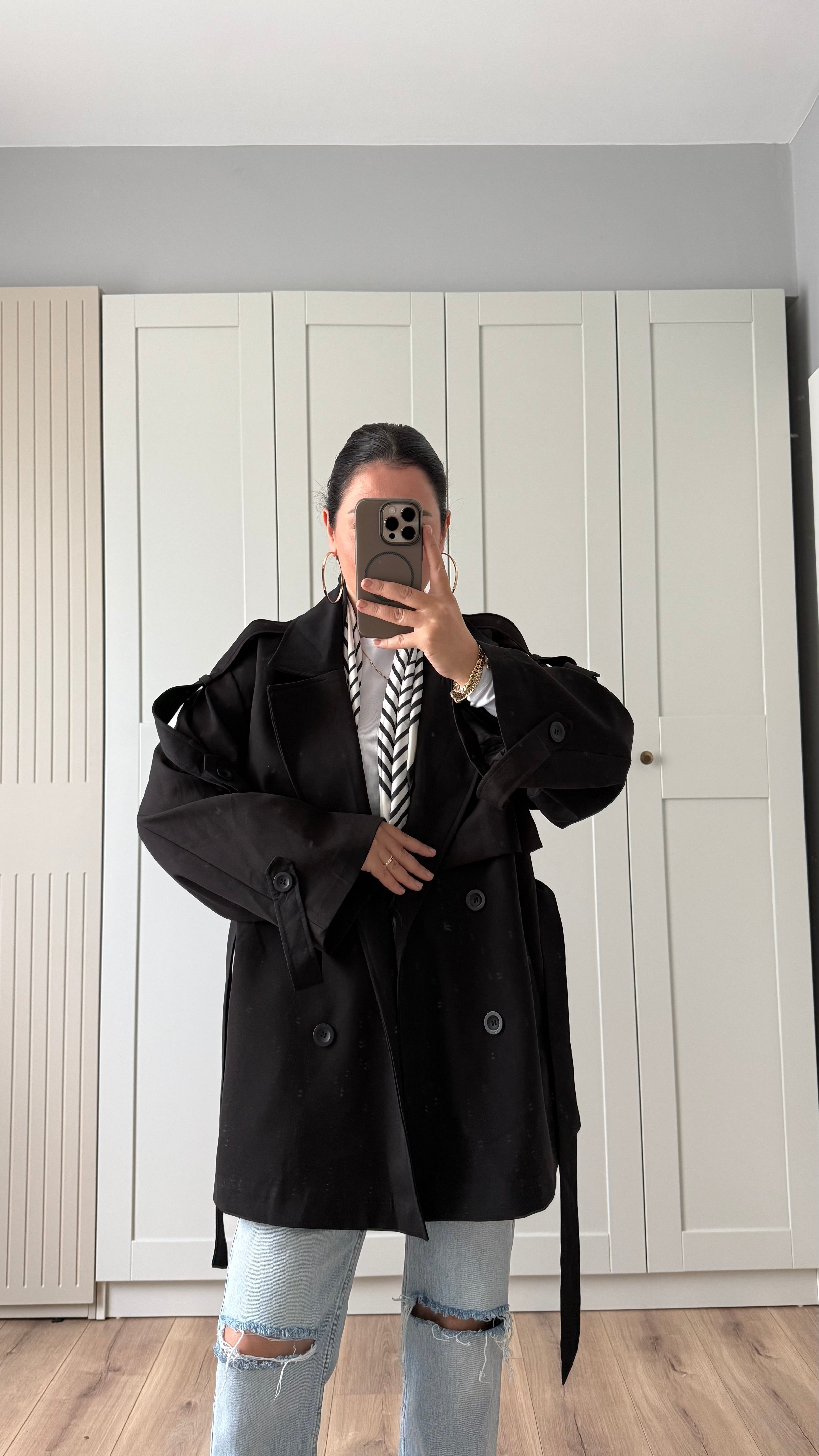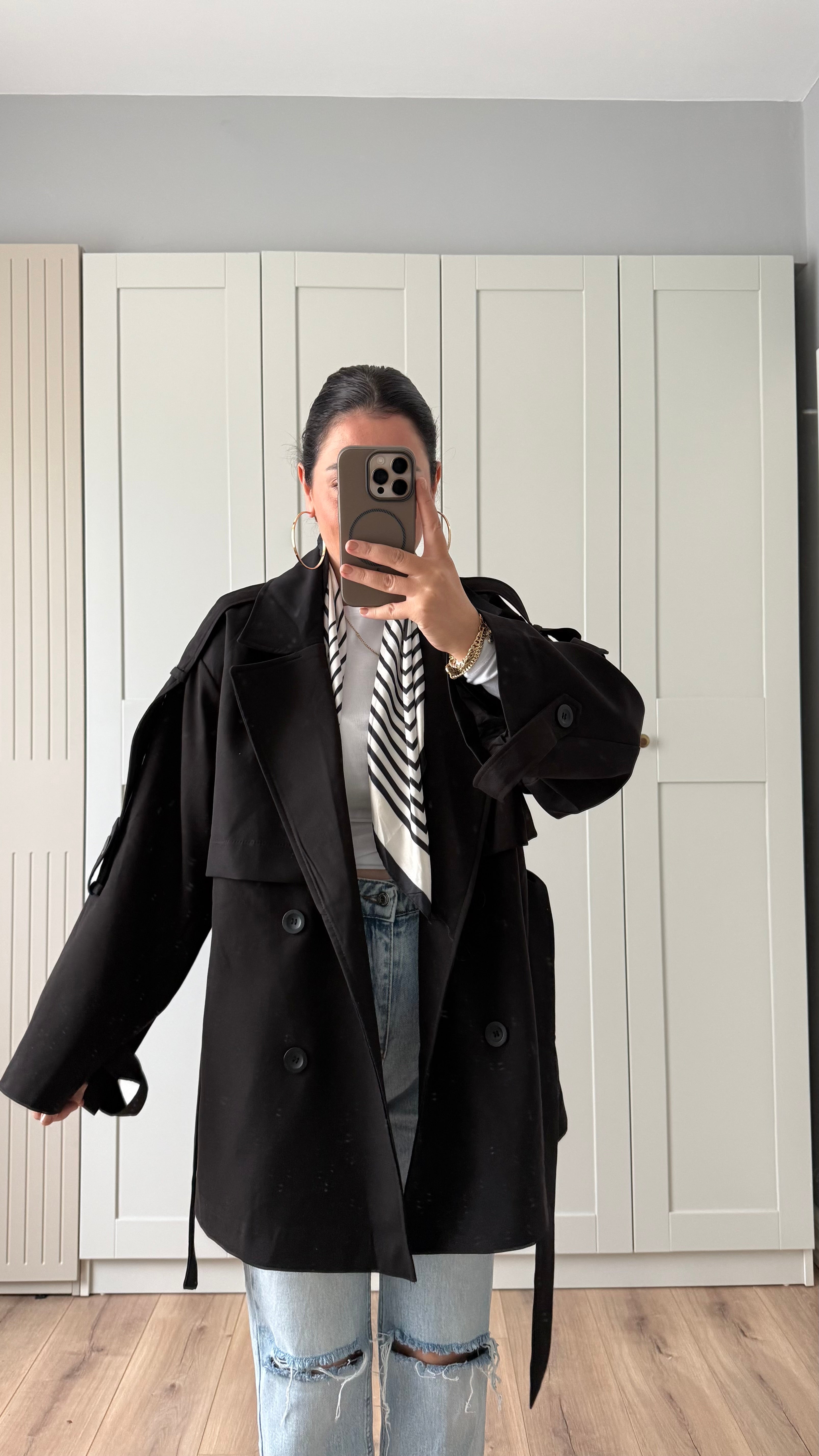 SİYAH BEL KUŞAKLI TRENÇKOT