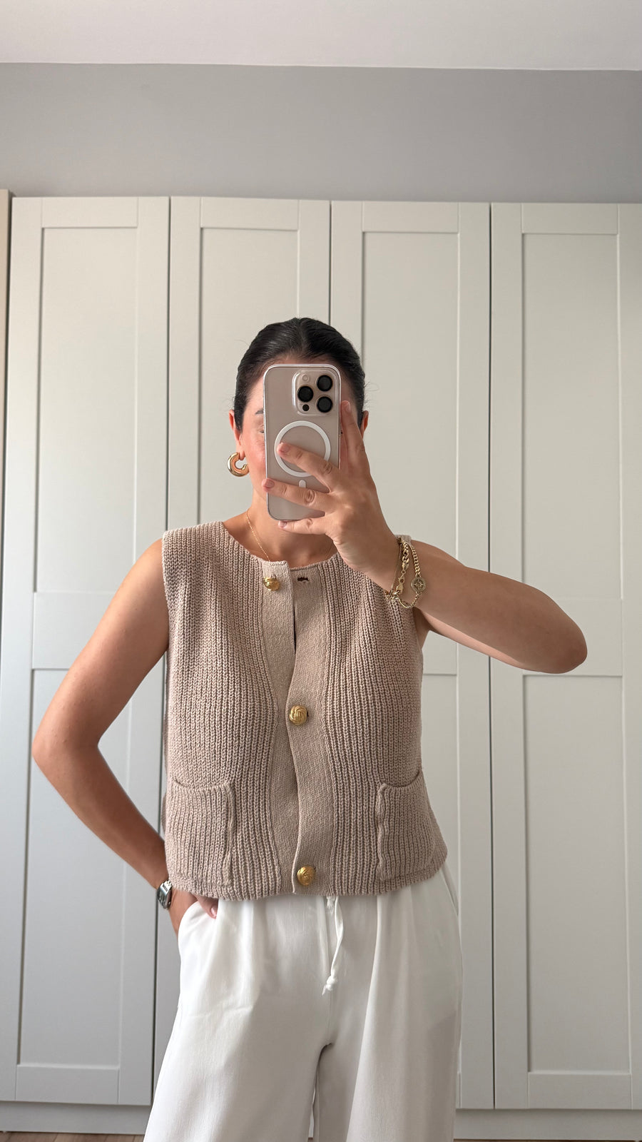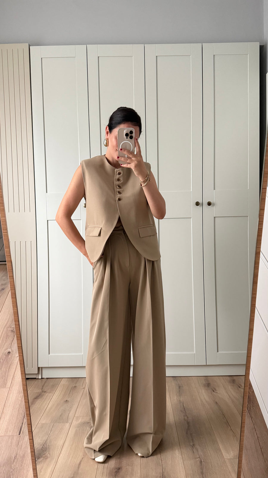 TAŞ VATKALI YELEKLİ PALAZZO PANTOLON TAKIM