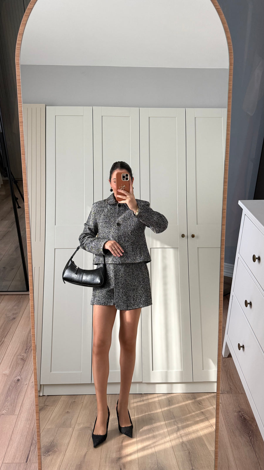 BALIKSIRTI DESENLİ CEKET ETEK TAKIM