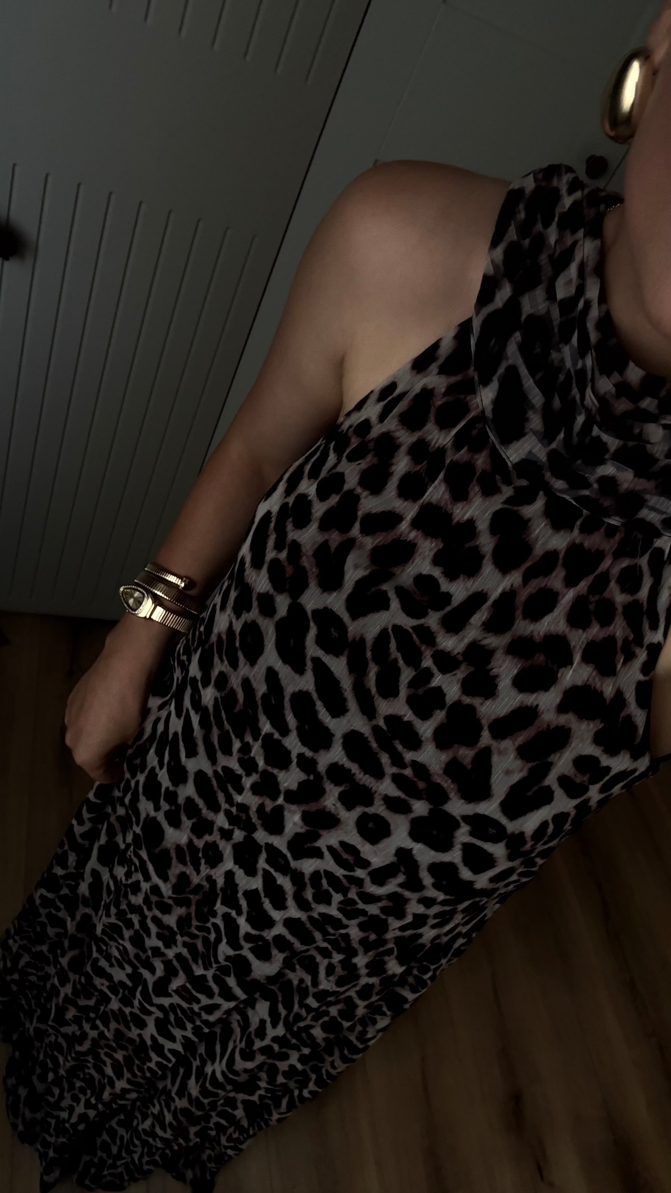 HALTER YAKA ASTARLI LEOPAR UZUN ELBİSE