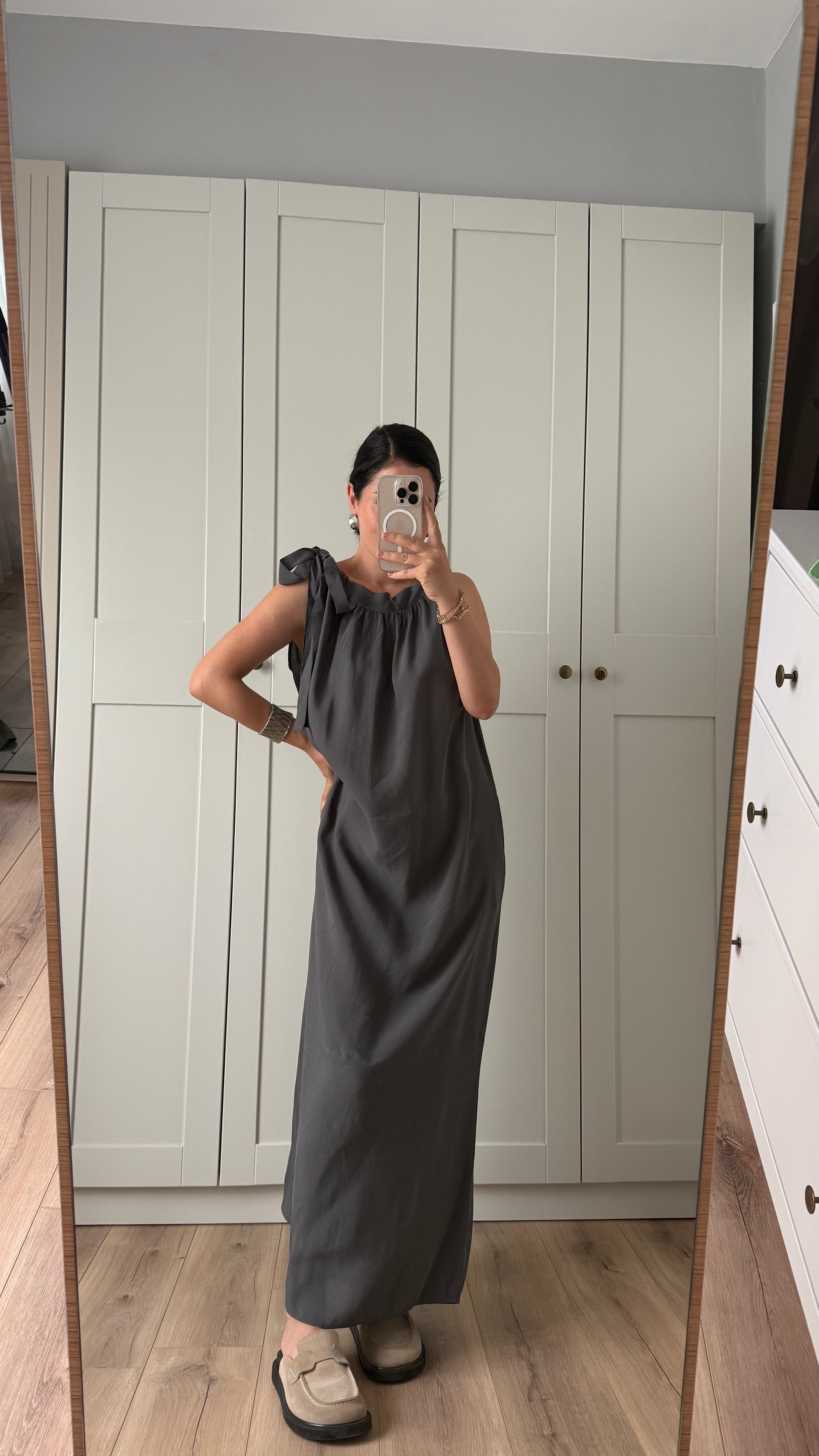 ANTRASİT OMUZDAN BAĞLAMA ELBİSE