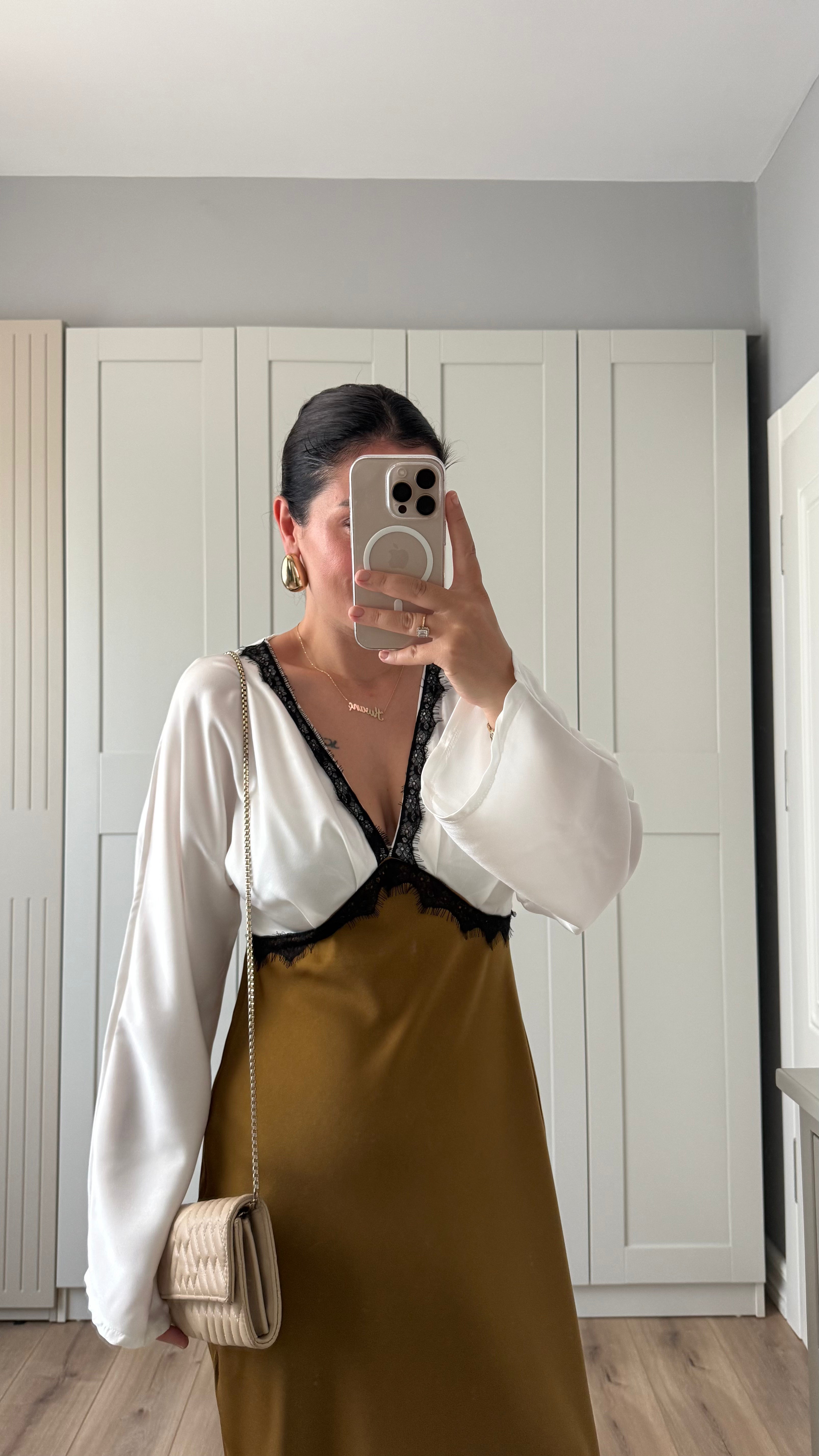 DANTEL DETAYLI SATEN SLİP ELBİSE