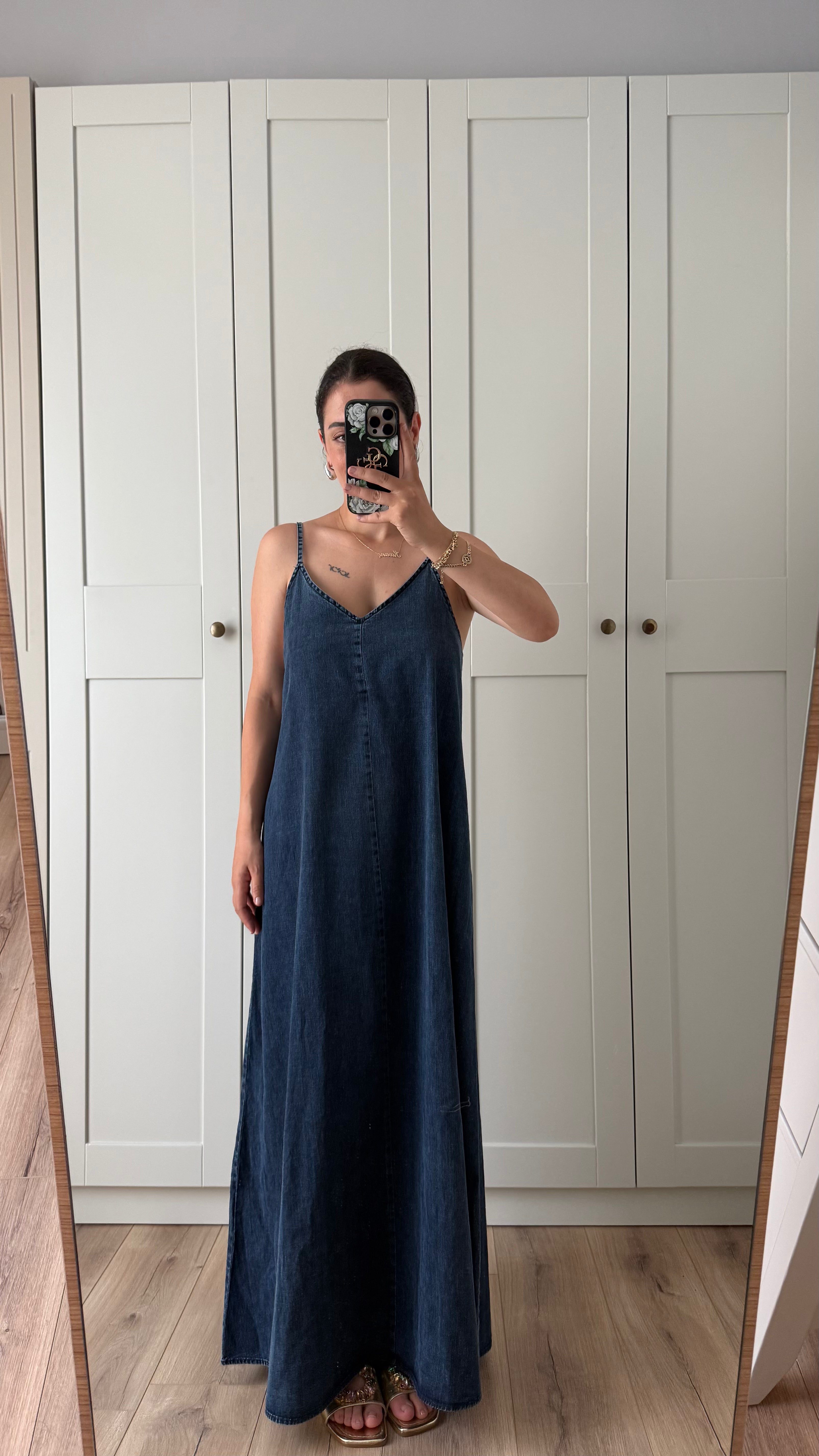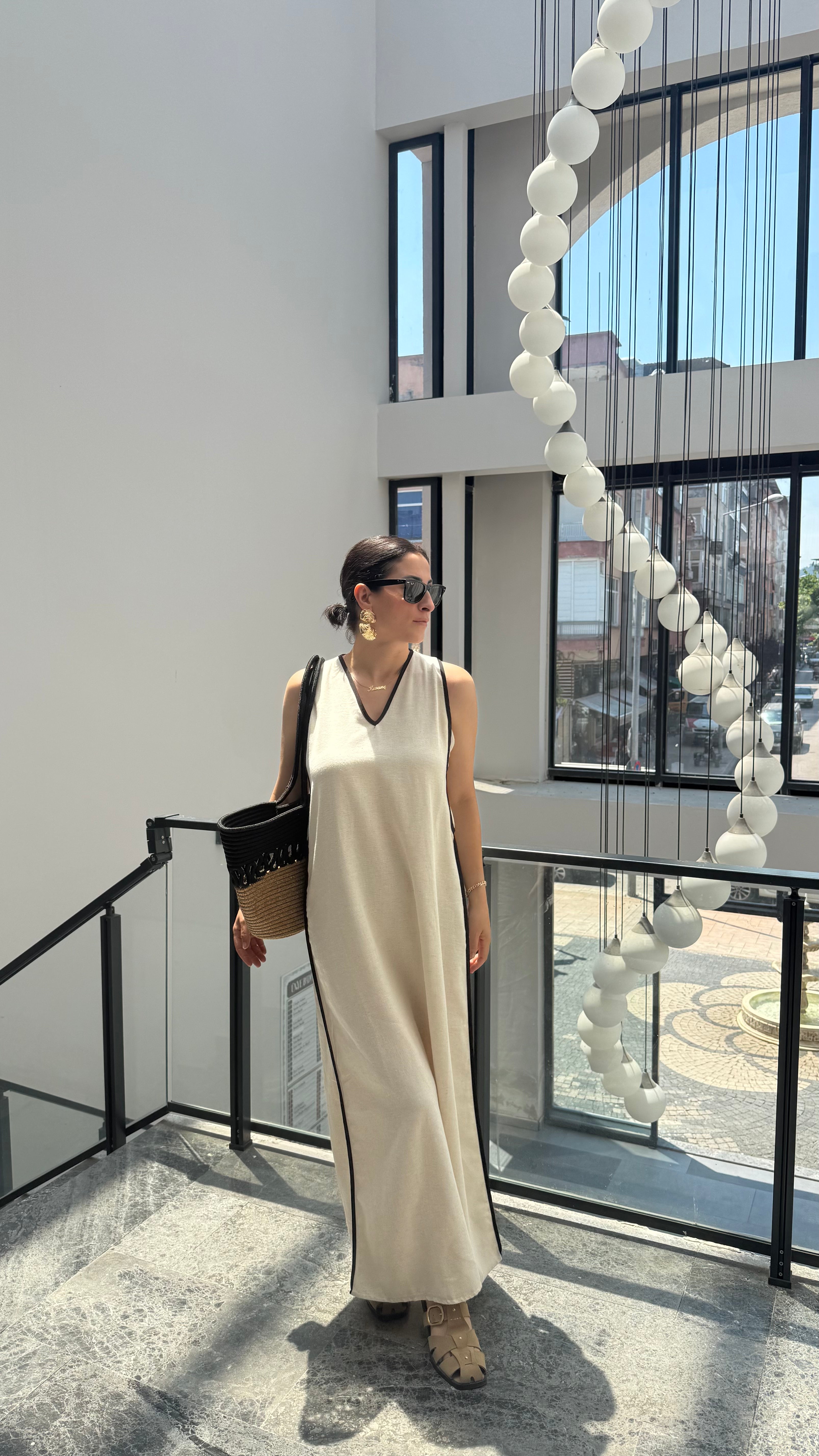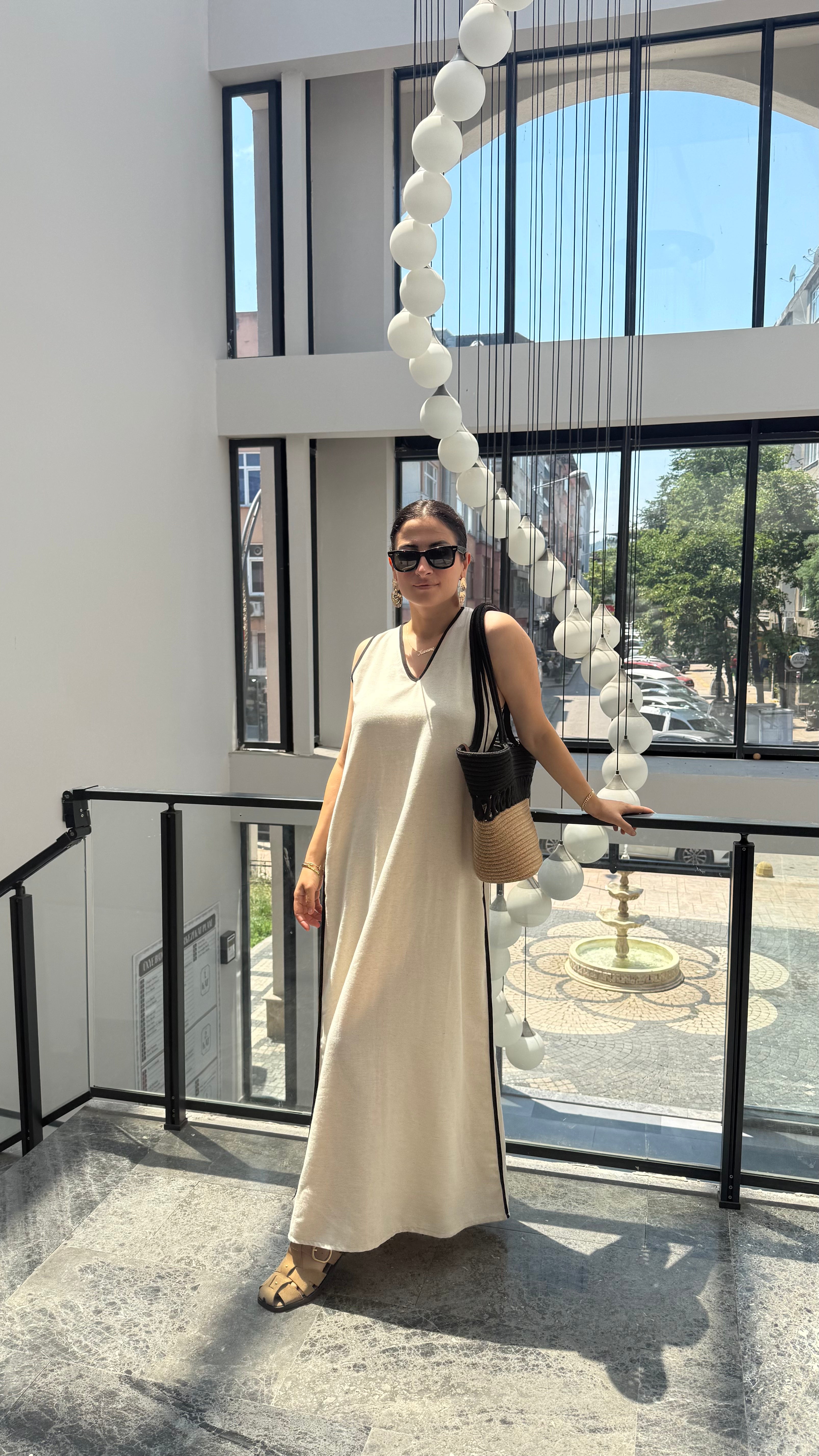 BİYELİ KETEN KARIŞIMLI ELBİSE