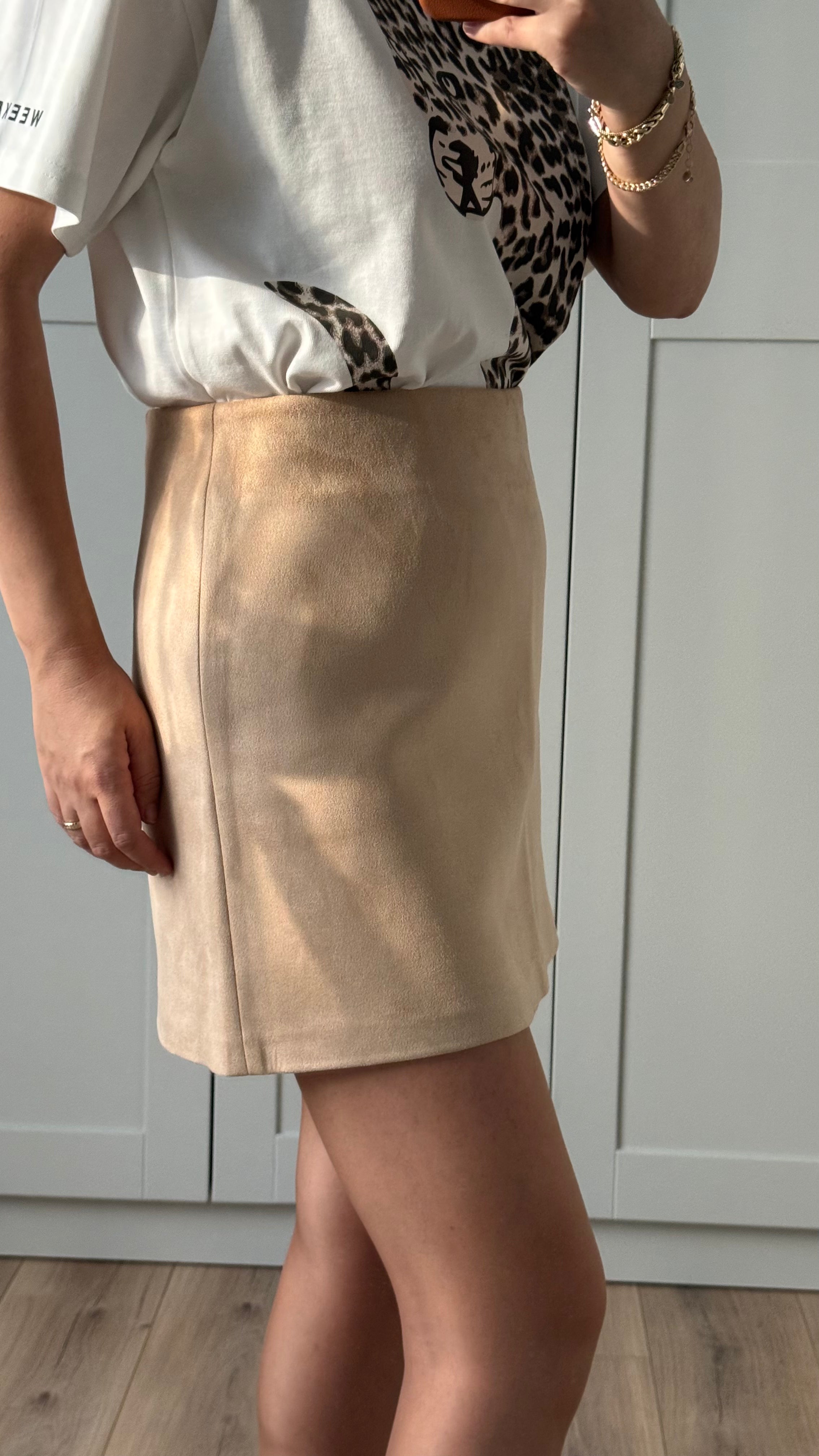 NUBUK KUMAŞ MİNİ ETEK - BEJ