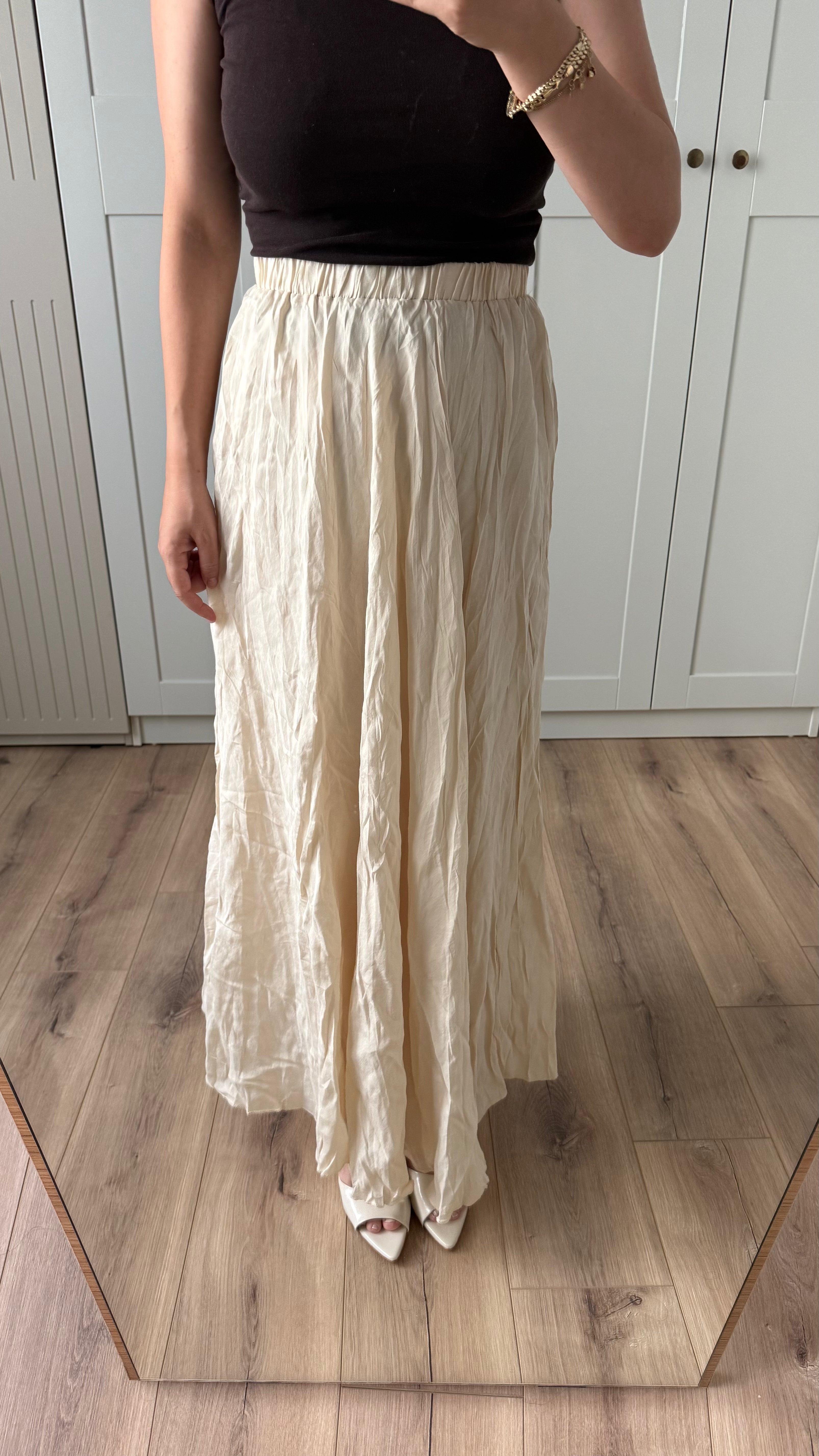 EKRU MAXİ BOY KIRIŞIK ETEK