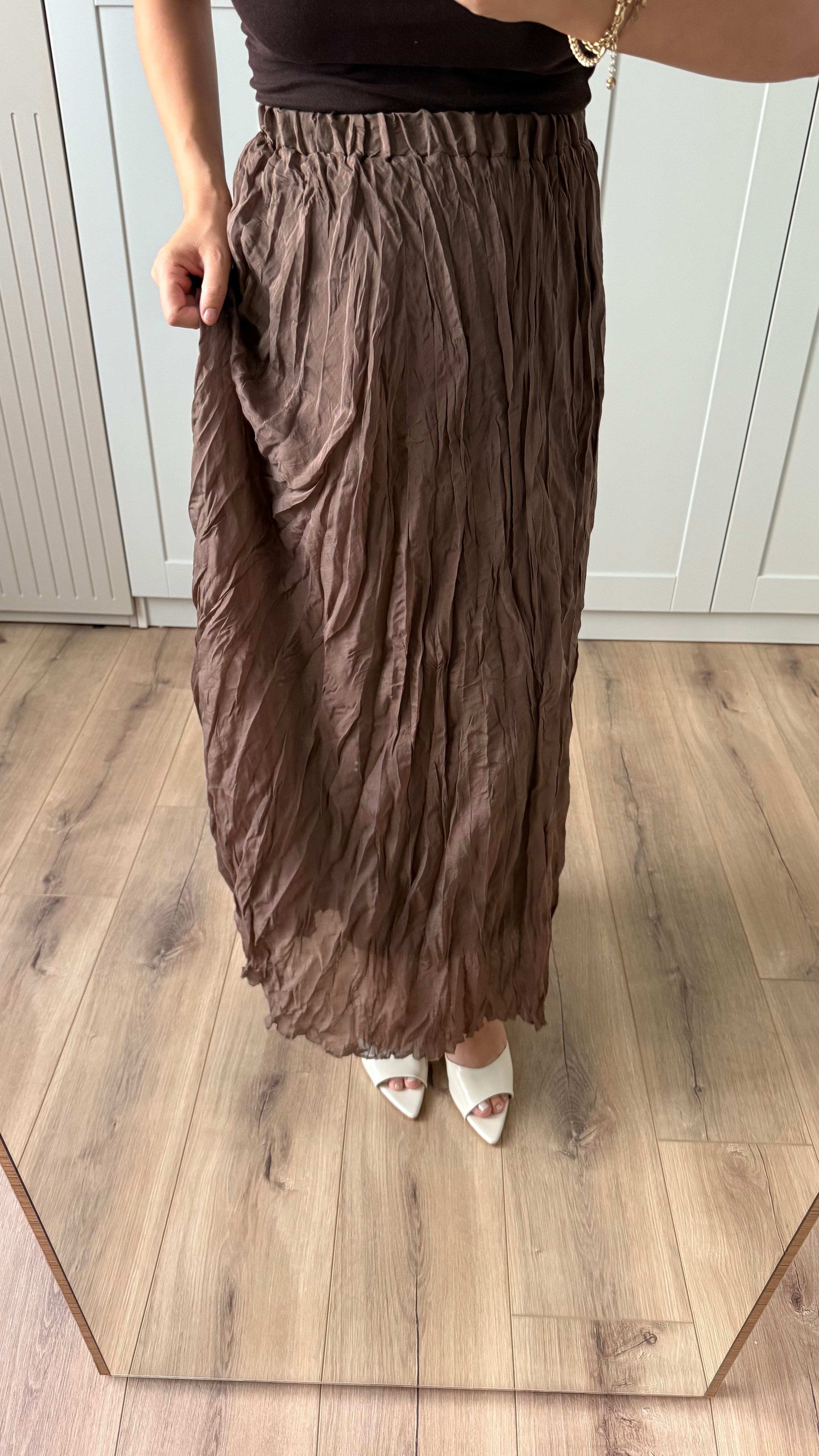 KAHVE MAXİ BOY KIRIŞIK ETEK
