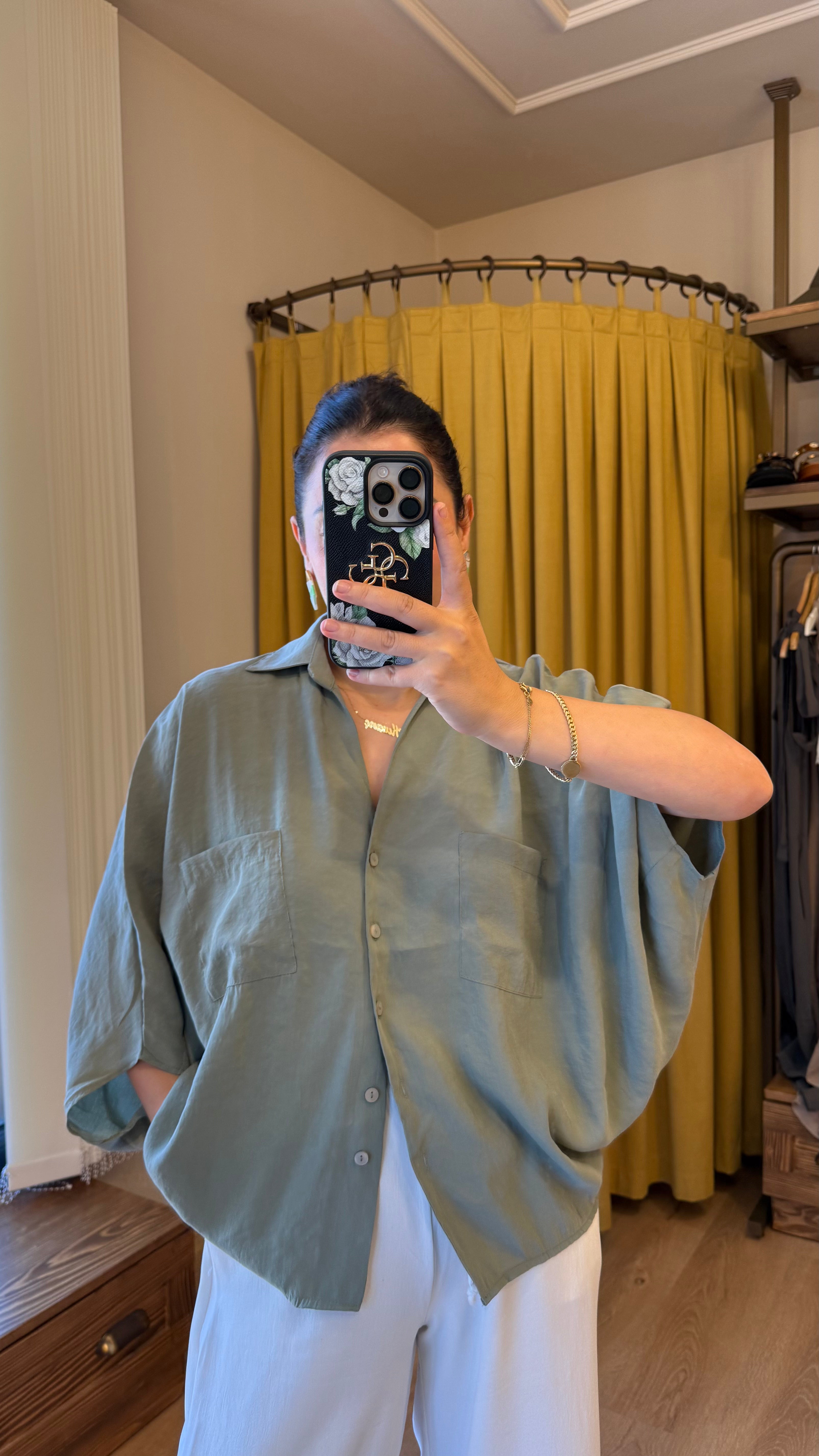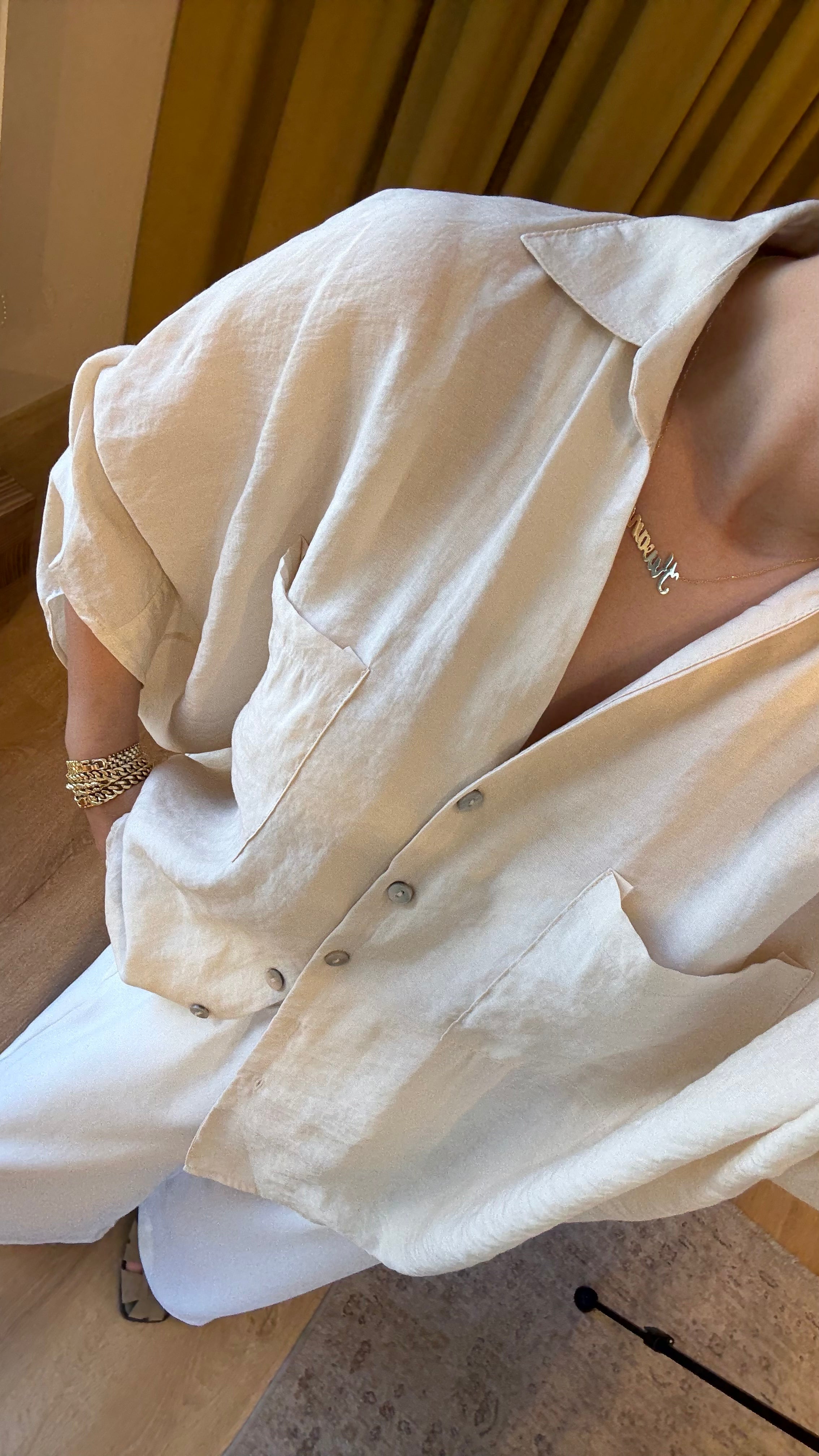 BEJ HASIR KEMERLİ GÖMLEK ŞORT TAKIM
