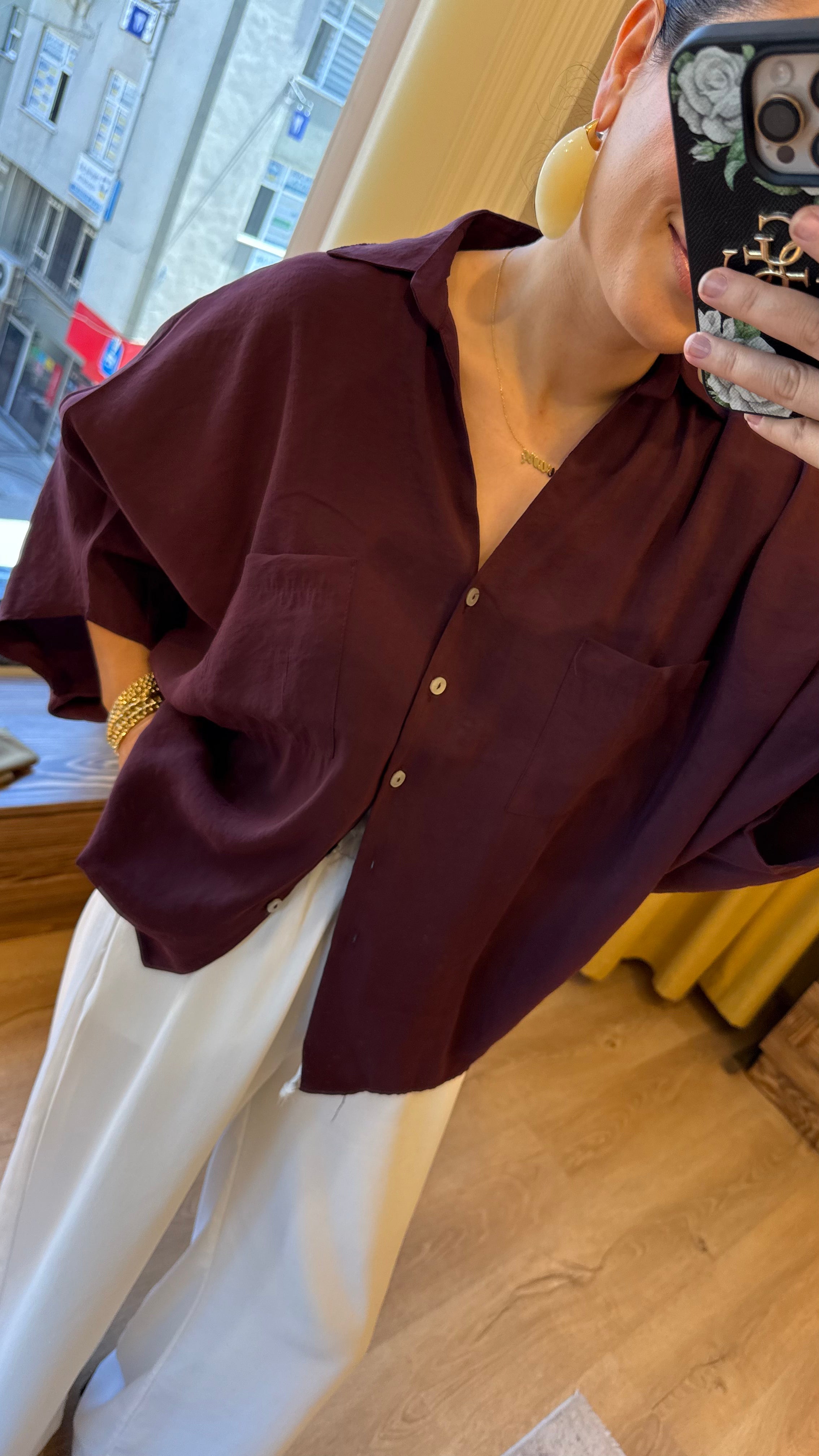 BORDO TENSEL DOKULU YARASA KOL GÖMLEK