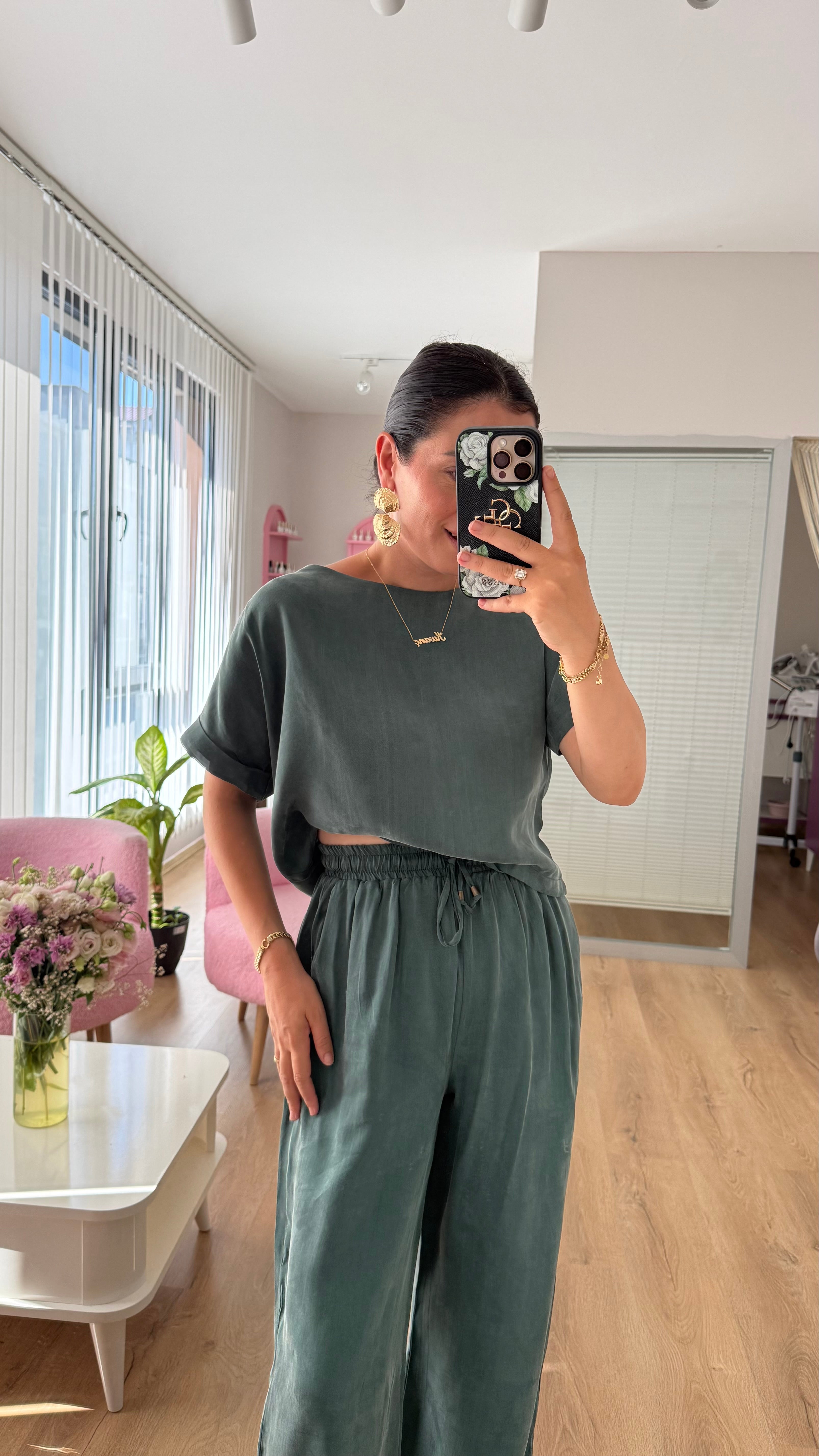 ZÜMRÜT BLUZ PANTOLON DOKULU TAKIM