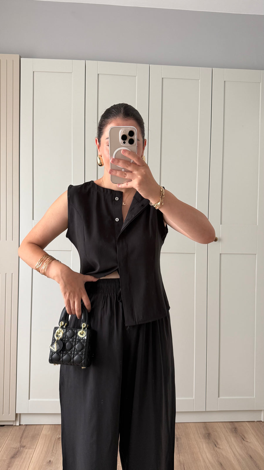 TENSEL KUMAŞ YELEKLİ TAKIM - SİYAH