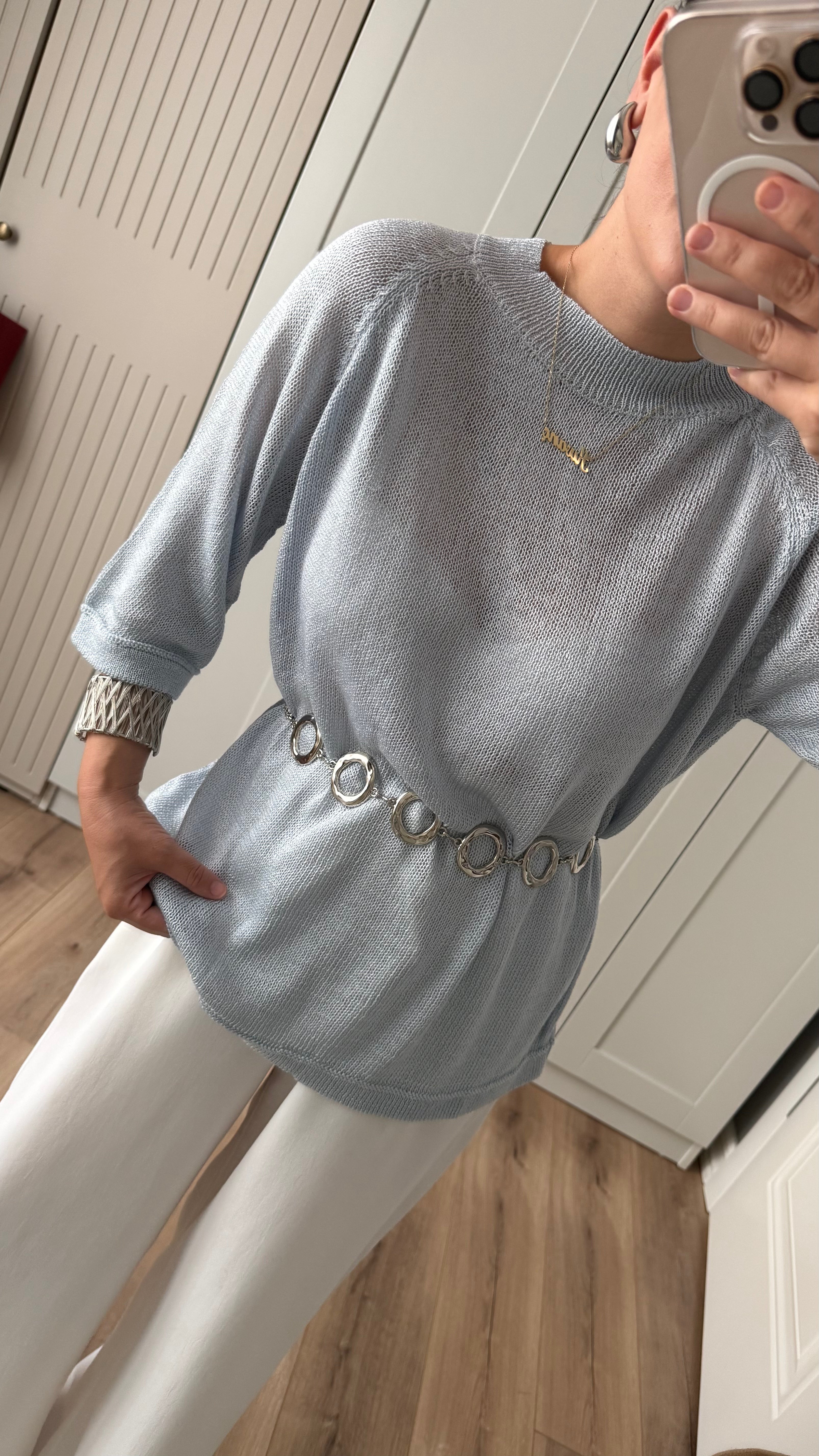 BEBE MAVİSİ YARIM KOL MERSERİZE BLUZ