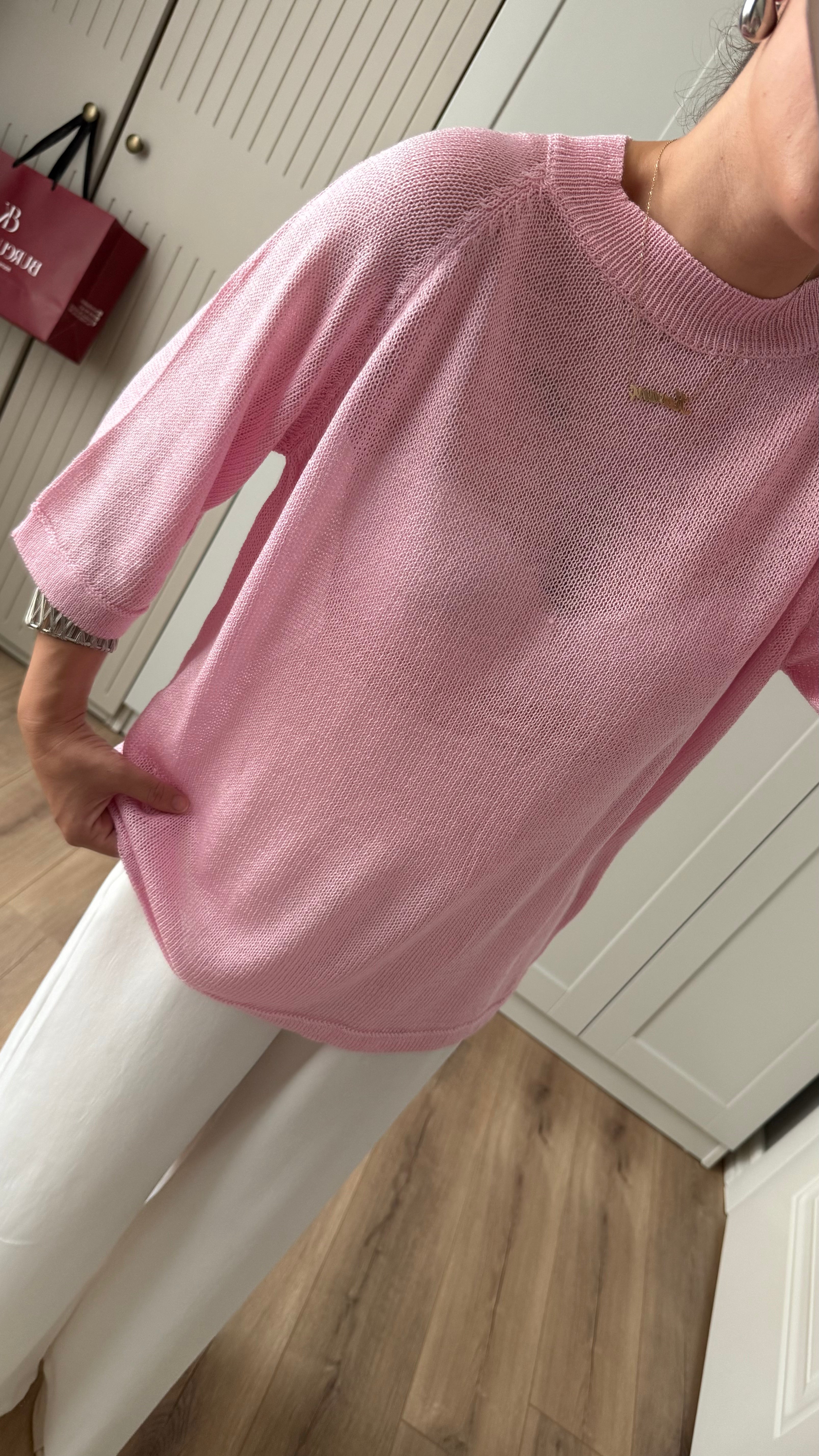 PEMBE YARIM KOL MERSERİZE BLUZ