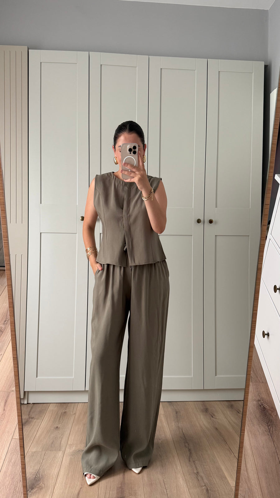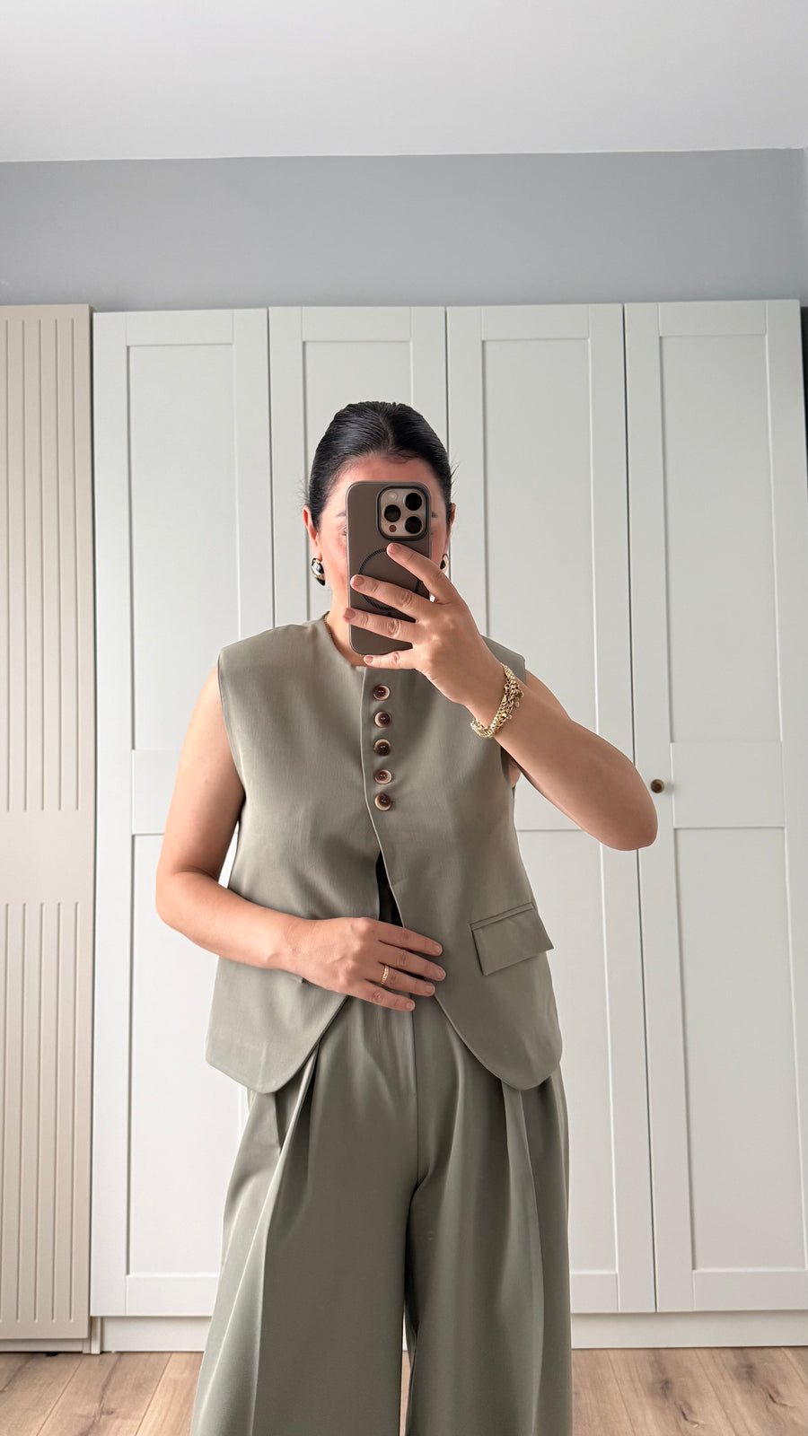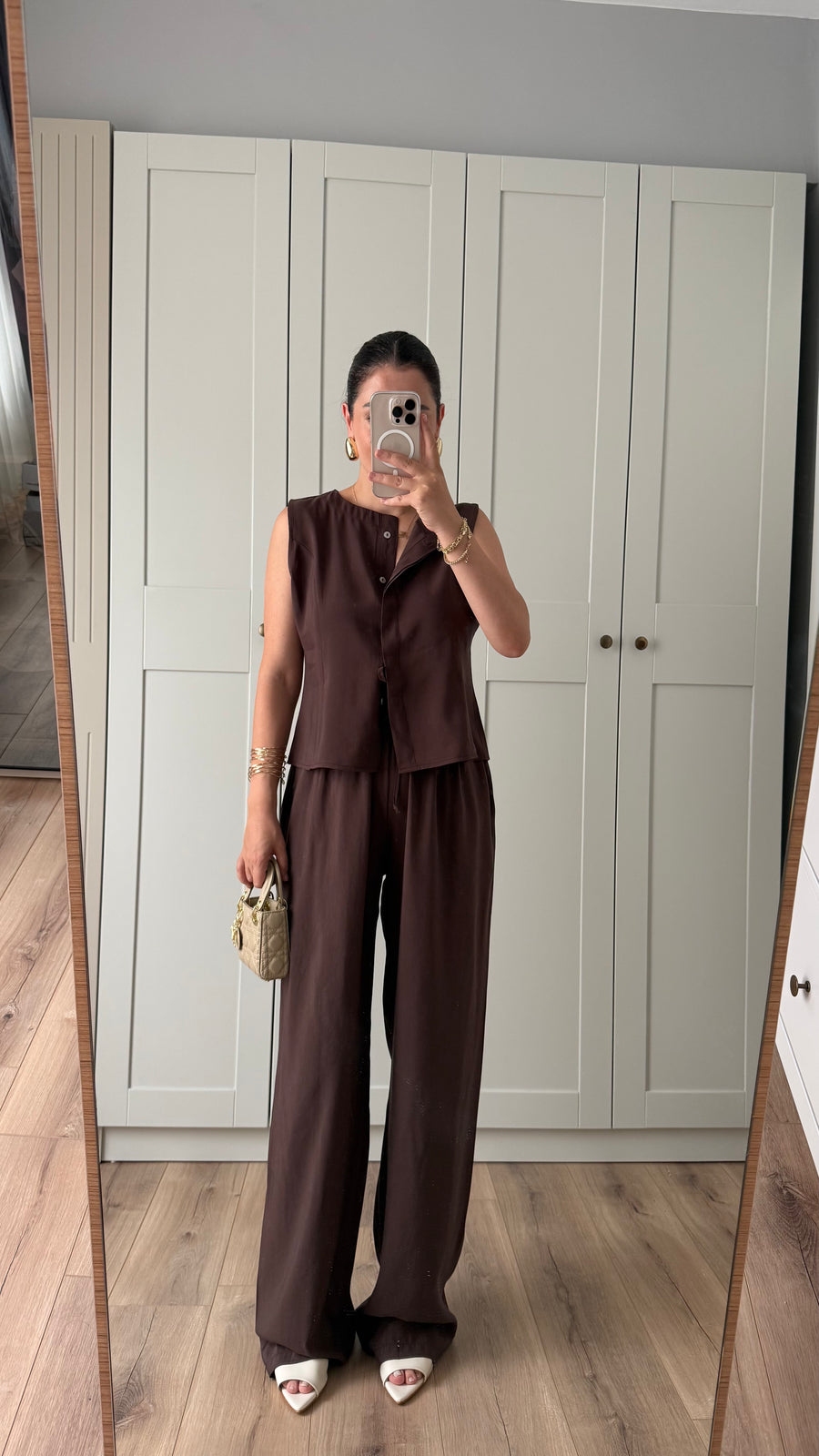 ACI KAHVE VATKALI YELEKLİ PALAZZO PANTOLON TAKIM