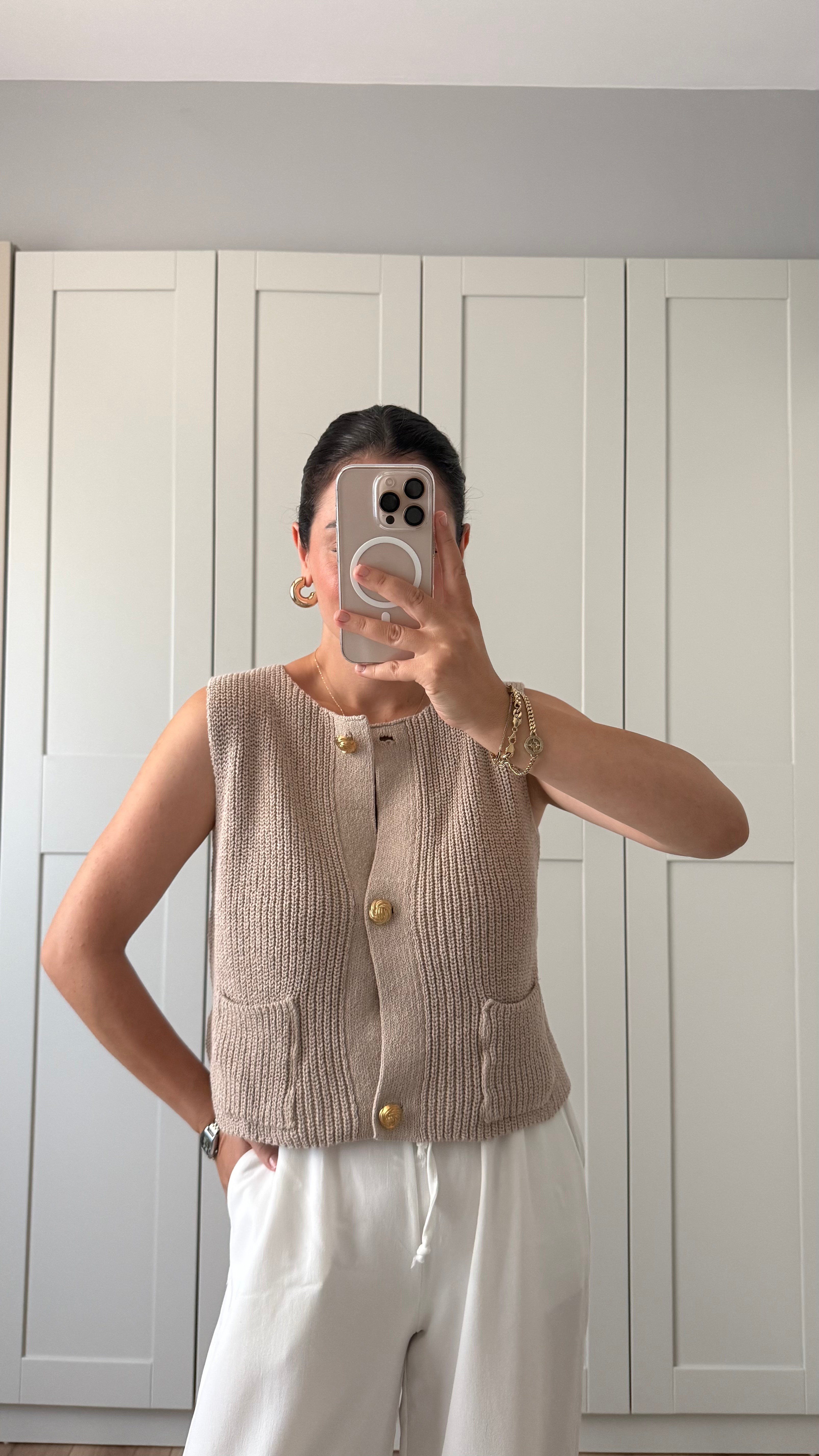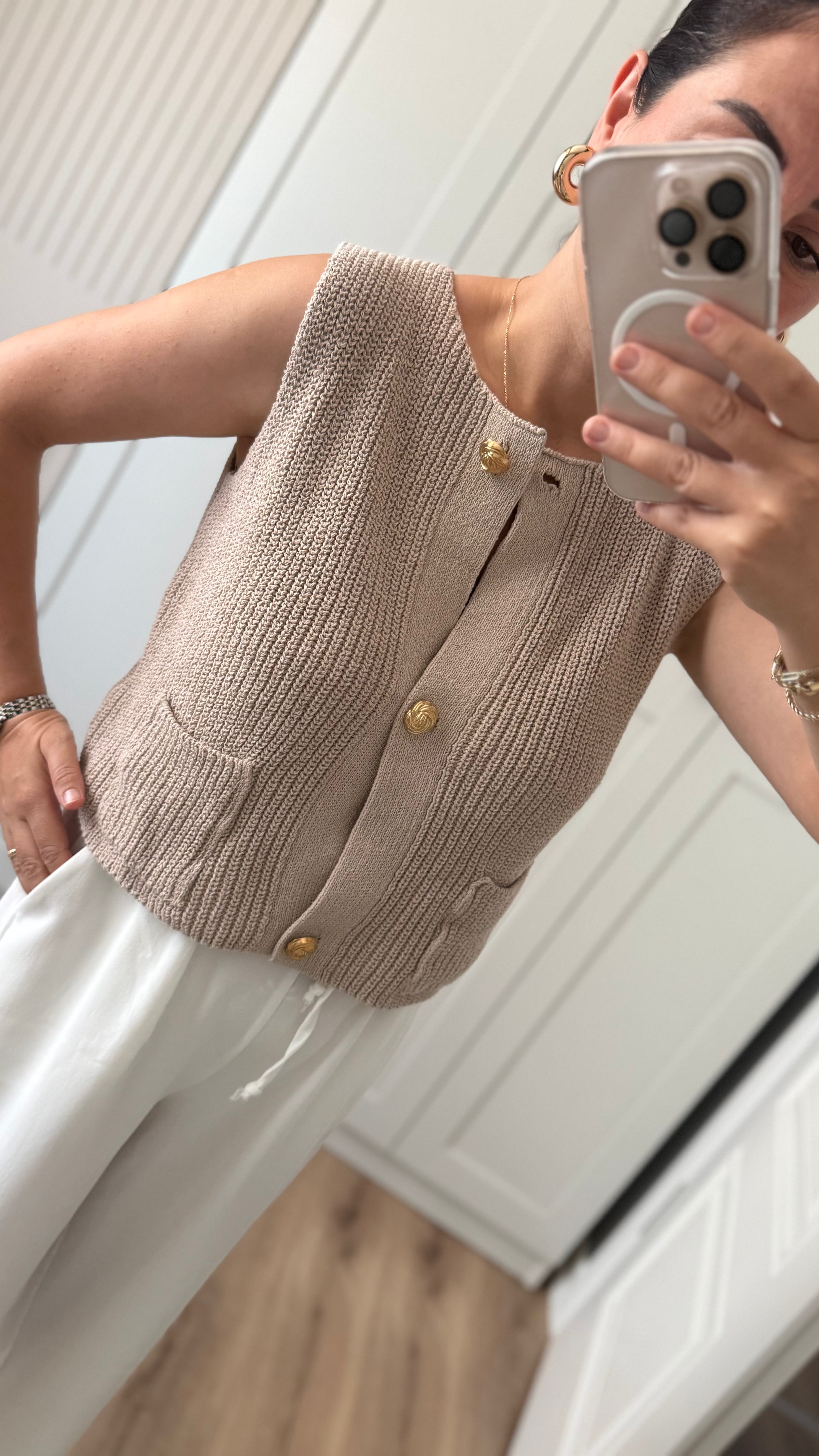 EKRU GOLD DÜĞMELİ ÖRME YELEK