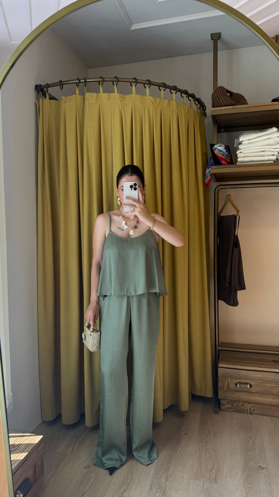 HAKİ ASKILI BLUZ PANTOLON TAKIM