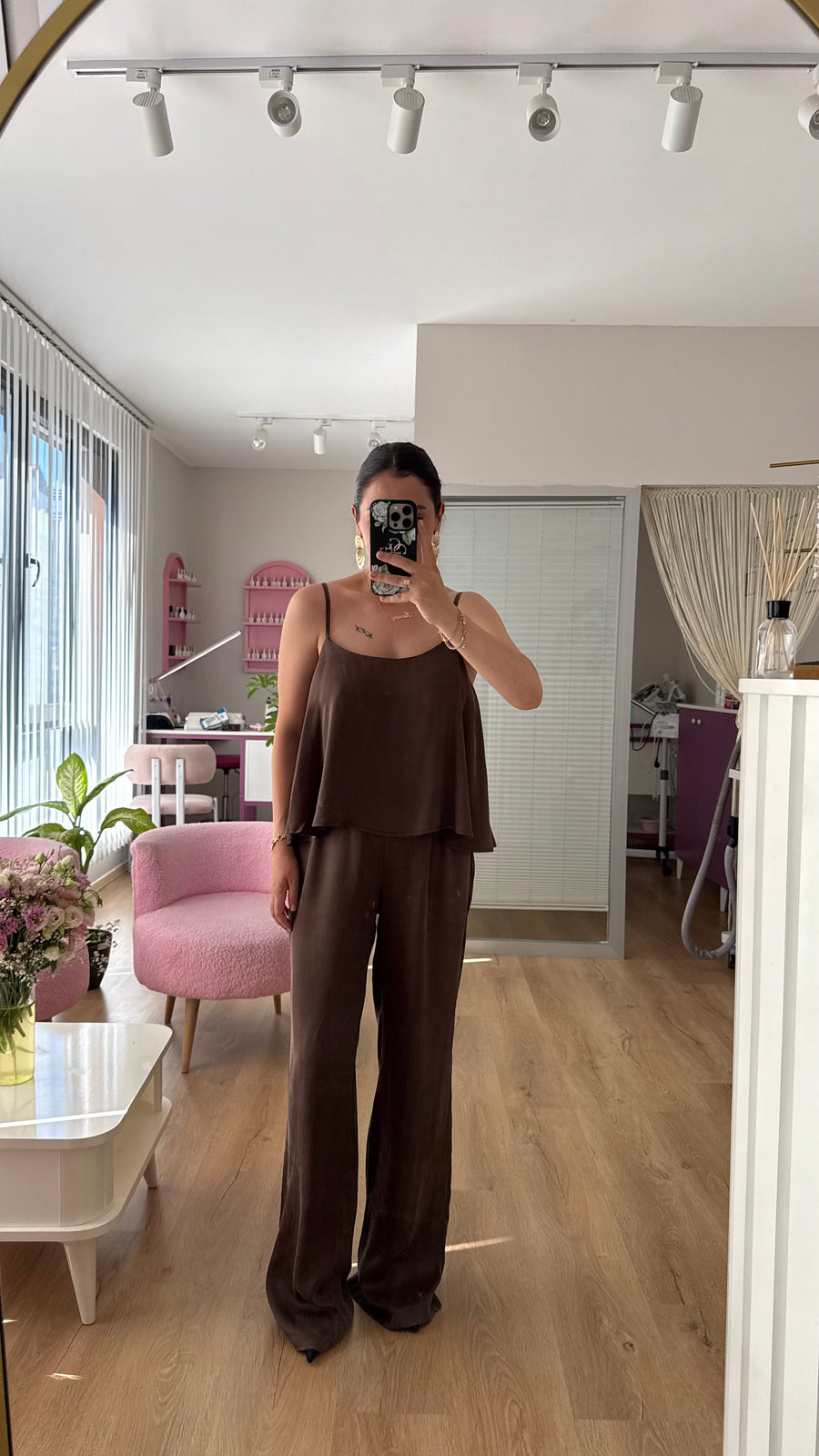 KAHVE ASKILI BLUZ PANTOLON TAKIM